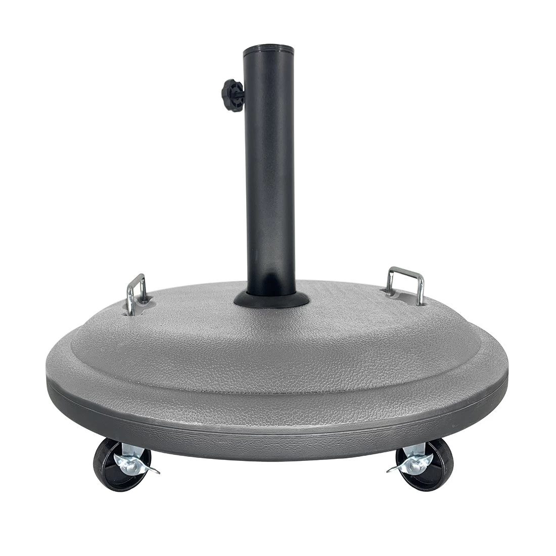 DISEÑO: Base para sombrilla ajustable con ruedas para una mayor movilidad. Incorpora una rosca ajustable en el tubo para adaptar el mástil de la sombrilla.MOVILIDAD: Es fuerte, duradera y fácil de transportar gracias a su doble asa.MEDIDAS: Pie redondo de 50 cm ø y 25kg de peso.MATERIAL: Duradero, firme y resistente al agua y a los rayos del sol, uso habilitado para interior y exteriorFÁCIL DE UTILIZAR: Ideal para asegurar la estabilidad y sujeción de tu sombrilla frente al viento.