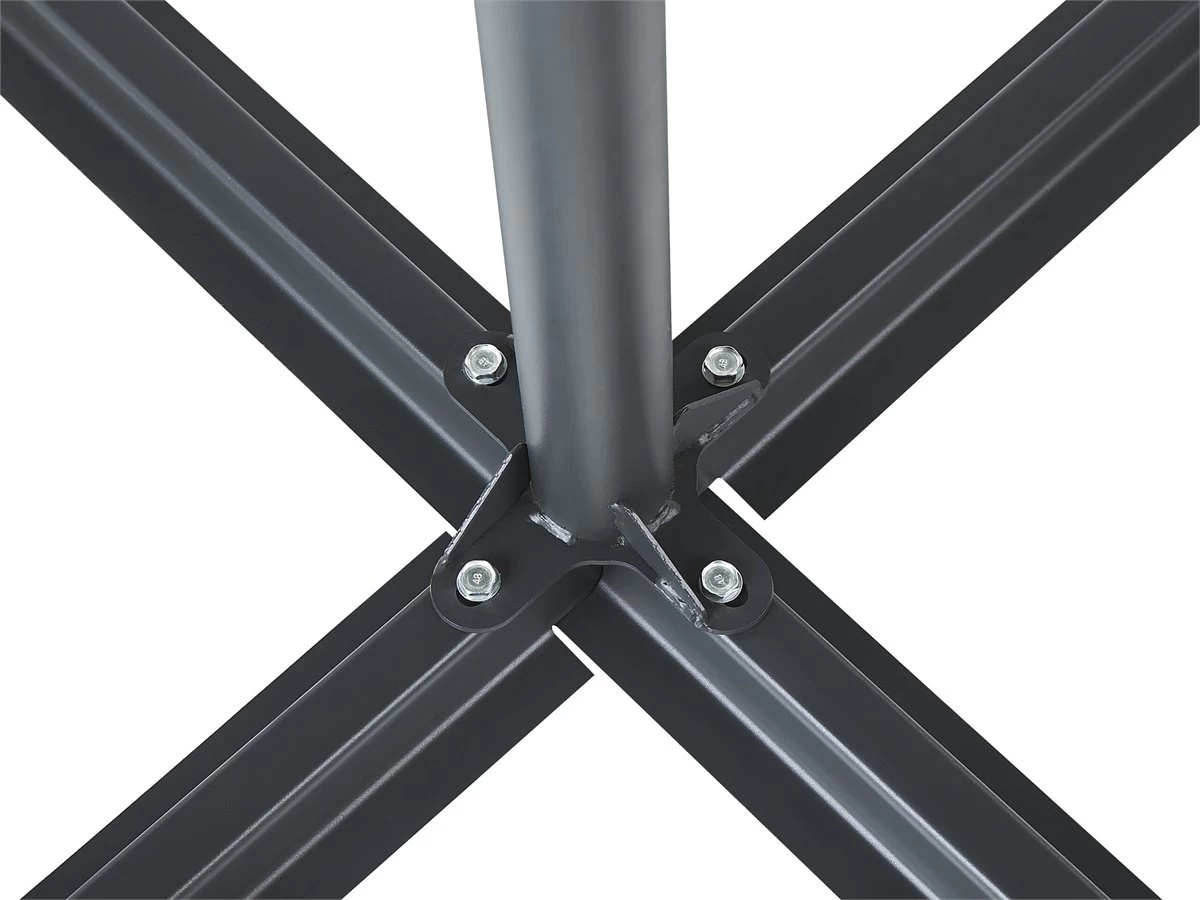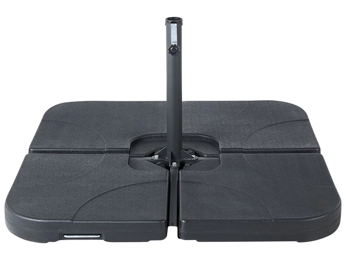 Soporte para sombrilla. Añade a tu jardín esta base para sombrilla con forma de cruz. Está fabricada a partir de metal resistente, estable y de alta calidad. Incluye una capa protectora que la protege de las inclemencias del tiempo. Detalles: Tipo de Producto: Accesorios para sombrilla Color: Negro Tipo de material: Acero Material principal: Acero Material adicional: Acero inoxidable Dimensiones: Profundidad: 100 cm Ancho: 100 cm Diámetro del poste: 550 Altura: 55 cm Peso: 4.5 kg La oferta incluye: 1 x Base para sombrilla Ventajas: Muy fácil de conservar, Ideal para uso al aire libre, Rápido y fácil de usar, Fácil de desplazar, Mantenimiento sencillo Información de montaje: Requiere montaje completo. 5-15 min. Texto de resistencia: Gracias a su resistencia al agua, puedes utilizar el producto al aire libre y dejarlo a la intemperie durante lluvias ligeras. Si no es posible guardarlo en un lugar cerrado y protegido, recomendamos utilizar una funda protectora. La exposición prolongada a la humedad puede provocar daños en el mueble. Resistencia: Agua ligera / humedad Consejos de mantenimiento: Acero: 1.Las lluvias ácidas, el agua salada y las tormentas de arena pueden dañar la capa protectora 2.Durante el invierno, utilice una funda protectora o guarde los muebles en el interior 3.Durante la lluvia, se recomienda utilizar una funda protectora 4.Limpiar solo con agentes de limpieza suaves. No utilice limpiadores alcalinos o ácidos.