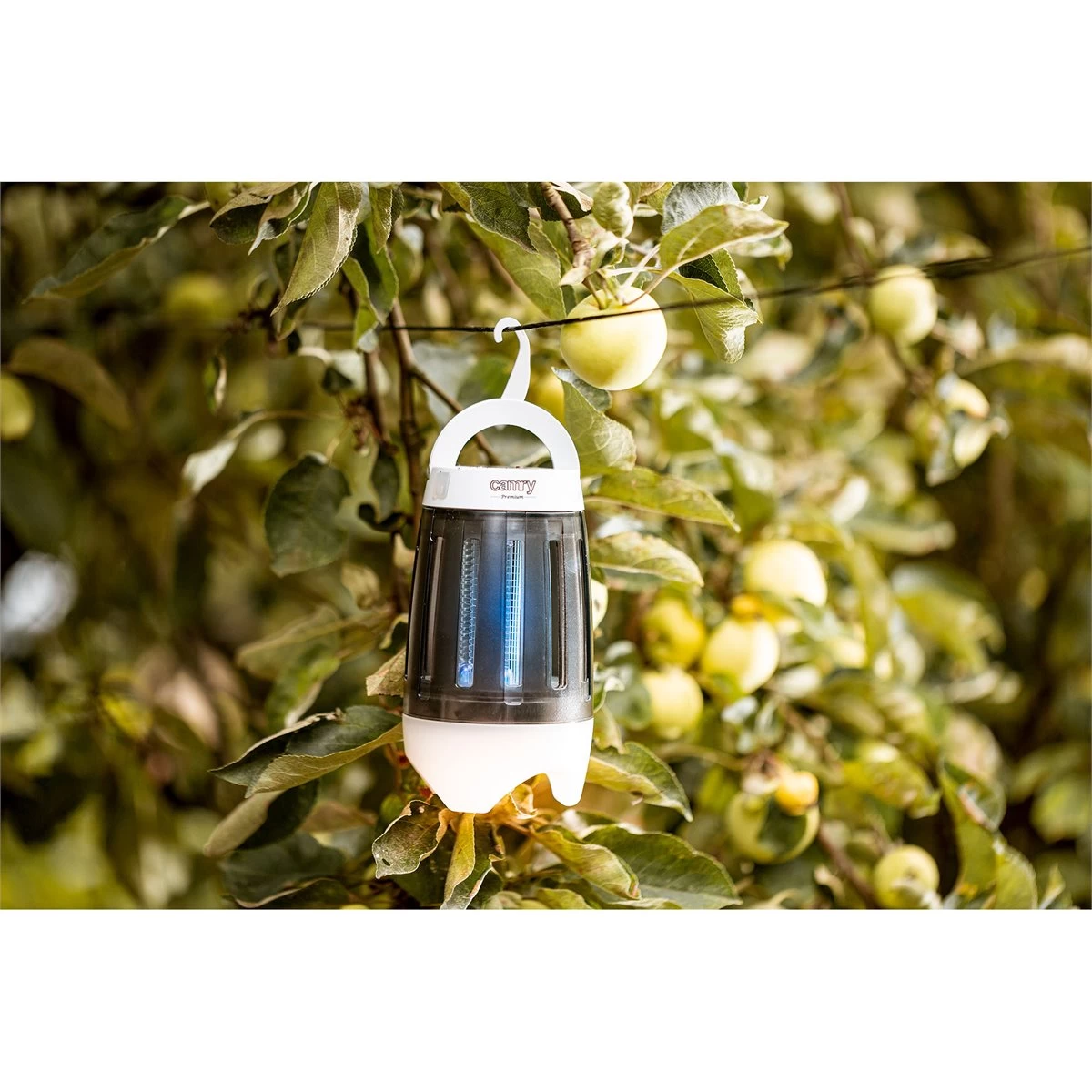 Disfruta de una velada perfecta en tu terraza, jardín o en tus vacaciones en camping sin miedo a las molestas picaduras de mosquito o de otros insectos voladores. La lámpara anti mosquitos CR 7935 atrae con luz ultravioleta a todo tipo de insectos y los electrocuta con alto voltaje, es segura para los humanos ya que funciona sin necesidad de productos químicos y no emite sustancias nocivas, su radio de acción es de 40 m2. Además cuenta con una luz LED de uso independiente para alumbrar mientras te protege y disfrutas del aire libre. La lámpara es recargable, su batería de 2000 mAh ofrece un tiempo de trabajo de 10-16 horas dependiendo del número de descargas eléctricas, tiene un gancho para colgarla fácilmente donde necesites.