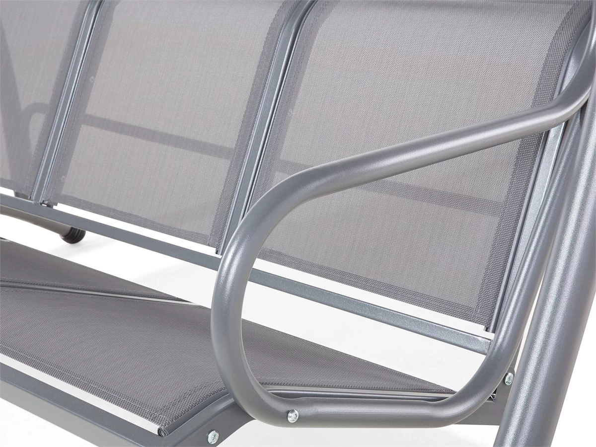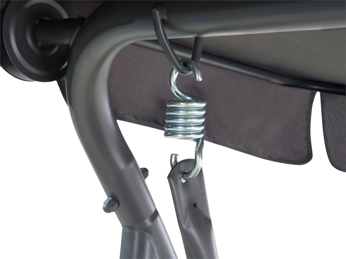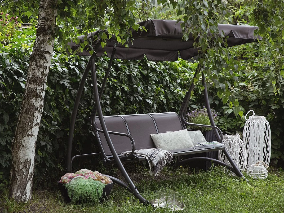 Columpio de porche romántico. Cree un espacio de lujo para sus vacaciones con el columpio de jardín. El hermoso y robusto marco es elaborado a partir de acero con revestimiento en polvo resistente a la intemperie. El asiento para 3 personas y el respaldo están hechos de textil trenzado durable. El dosel ajustable proporciona una amplia sombra contra el sol. El columpio es fácil de mantener. Podrá disfrutar de los mejores momentos del verano con el columpio. Detalles: Tipo de Producto: Columpio Estilo: Moderno Color: Negro Tipo de material: Acero Material principal: Malla Material adicional: Poliéster Acabado: Revestimiento en polvo Dimensiones: Altura del apoyabrazos: 25 cm Profundidad: 120 cm Altura del asiento: 46 cm Ancho: 190 cm Altura: 169 cm Superficie del asiento: 146×49 cm Peso: 40 kg Capacidad de peso: 280 kg La oferta incluye: 1 x Columpio Ventajas: La práctica cubertura brindará protección contra el viento y el sol, Brinda comodidad y relajación, Ancha superficie del asiento, Perfecto para todo tipo de exterior, Resiste a todo tipo de clima, Construcción muy estable Información de montaje: Requiere montaje completo. Más de 60 min. Texto de resistencia: Gracias a su resistencia al agua, puedes utilizar el producto al aire libre y dejarlo a la intemperie durante lluvias ligeras. Si no es posible guardarlo en un lugar cerrado y protegido, recomendamos utilizar una funda protectora. La exposición prolongada a la humedad puede provocar daños en el mueble. Resistencia: Agua ligera / humedad Consejos de mantenimiento: Poliéster: 1.Cuando no esté en uso, manténgalo en un lugar limpio y seco para protegerlo de las condiciones atmosféricas 2.Aspire con un accesorio adecuado 3.Limpiar con champú seco y una esponja húmeda o un limpiador suave. Acero: 1.Cualquier daño a la capa de pintura exterior debe protegerse de la humedad 2.Para garantizar la protección contra la corrosión, evite los limpiadores alcalinos o ácidos. Después de limpiar, secar bien 3.Quite las tapas protectoras con regularidad para que salga todo el líquido, déjelas secar y utilice un spray anticorrosión si es necesario 4.Limpiar con detergentes suaves 5.Los muebles de acero y sus elementos no deben exponerse al agua. De lo contrario, existe la posibilidad de que el agua oxidada salga de las tuberías del marco 6.Cuando no estén en uso, los muebles deben guardarse en el interior o bajo una cubierta protectora 7.Para aumentar la durabilidad del artículo, manténgalo seco y recuerde la limpieza regular.