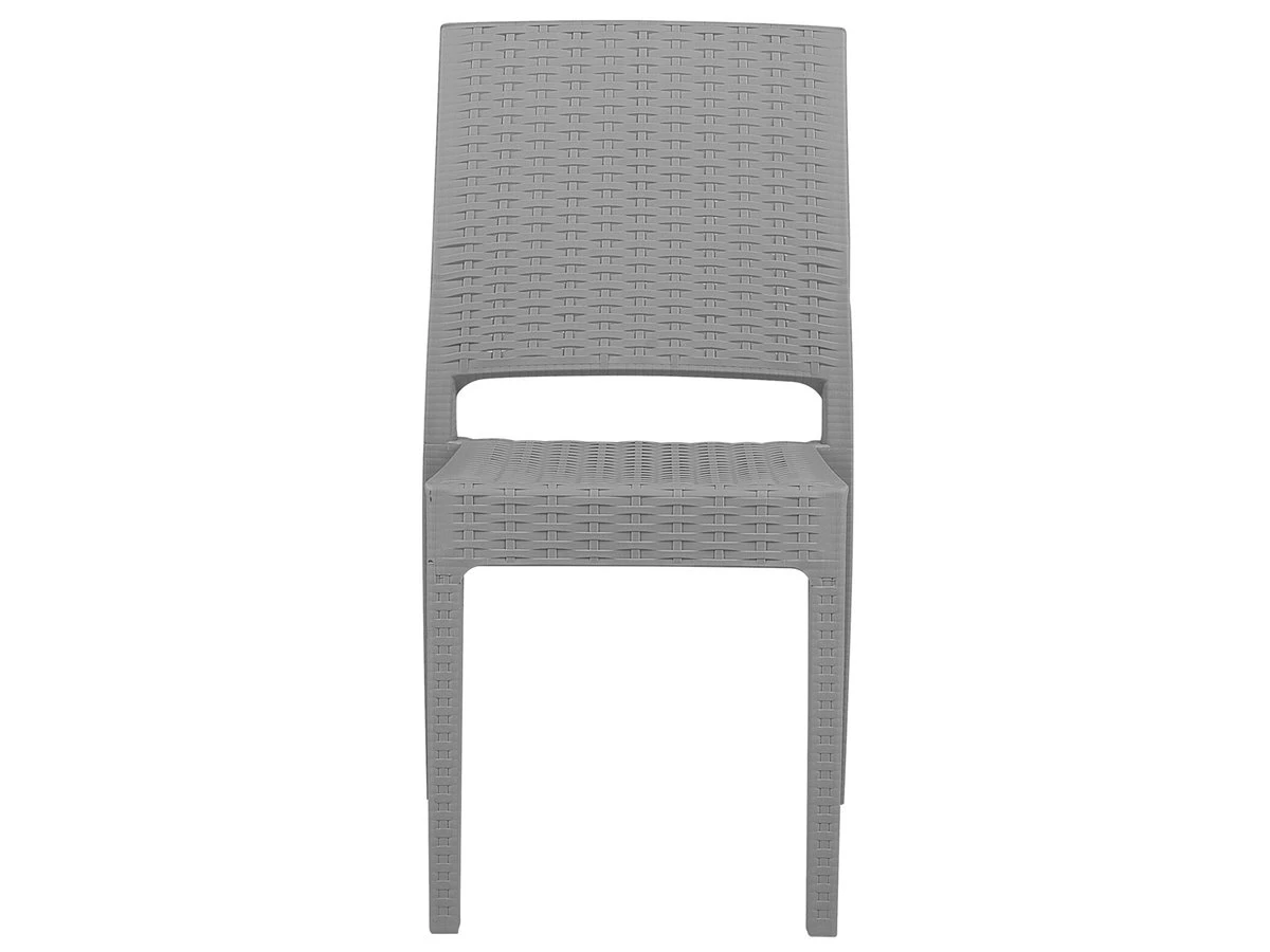 Conjunto de 4 sillas de jardín. Disfruta de una tarde de verano al aire libre, acompañado por tus amigos o familiares, con este conjunto de 4 sillas de jardín. Están fabricadas con material sintético resistente a condiciones climáticas adversas y de fácil mantenimiento. Las sillas lucen bien en una terraza moderna con cojines mullidos o mantas. Detalles: Tipo de Producto: Silla de jardín Estilo: Moderno Color: Gris Tonalidad: Gris claro Tipo de material: Material sintético Material principal: Material sintético Material de las patas: Material sintético Material del asiento: Material sintético Apoyabrazo: No Acabado: Mate Plegable: No Apilable: Sí Dimensiones: Profundidad: 47 cm Altura del asiento: 43 cm Ancho: 60 cm Altura: 89 cm Superficie del asiento: 47×60 cm Peso: 5 kg Capacidad de peso: 150 kg La oferta incluye: 4 x Silla Ventajas: Perfecto para todo tipo de exterior, Material ligero y durable, Resiste a la intemperie y a todo tipo de clima, Resistencia UV, No requiere mantenimiento regular, Apilable para un almacenaje mejor Información de montaje: No requiere montaje Texto de resistencia: Gracias al acabado especial, la superficie del producto es resistente a la oxidación. Esto significa que se puede utilizar en exteriores. Cuando el producto no esté en uso, se recomienda cubrirlo con una cubierta o colocarlo en un lugar seco. Resistencia: Intemperie Consejos de mantenimiento: Material sintético: 1.Manténgalo alejado de fuentes de calor, como parrilla o fuego, ya que las chispas pueden causar daños graves. No coloque utensilios calientes directamente sobre la superficie, 2.Limpiar con un limpiador a base de jabón suave y un paño suave, 3.El material es extremadamente resistente a la intemperie. Sin embargo, se recomienda utilizar una funda protectora para la temporada de invierno o, si es posible, guardar los muebles en un lugar fresco y seco.