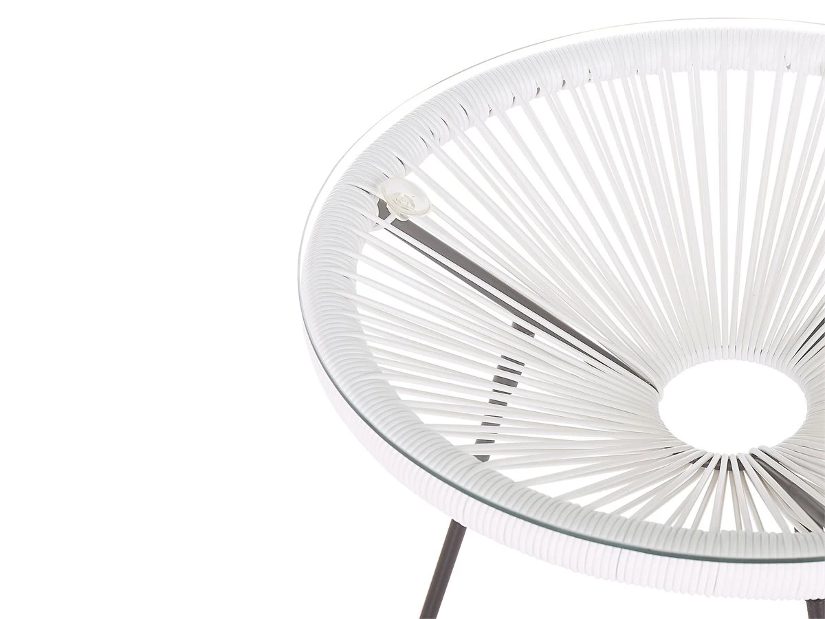 Juego de exterior. Este conjunto de balcón de inspiración mexicana refresca cualquier área interior y exterior. Está constituido por una mesa y 2 sillas. La superficie de asiento presenta un tejido de cuerdas fabricado a partir de ratán sintético. El tablero de la mesa de vidrio templado está asegurado con ventosas. Ideal para cualquier sala de estar o zona exterior de estilo moderno o retro. Detalles: Tipo de Producto: Conjunto bistro Estilo: Moderno Color: Blanco Tipo de material: Ratán sintético Material principal: Ratán sintético Material adicional: Vidrio templado Material de la superficie: Vidrio Acabado: Revestimiento en polvo Dimensiones: Dimensiones de la silla: 70x90x87 cm Dimensiones de la mesa de centro: 50x50x49 Altura del asiento: 41 cm Peso: 11 kg Capacidad de peso de la silla: 160 kg Capacidad de peso de la mesa: 50 kg La oferta incluye: 1 x Mesa, 2 x Silla Ventajas: Las ventosas fijan el tablero de forma segura, Asiento bajo y profundo, Ideal para uso en interiores y exteriores, Patas con tapas antideslizantes de seguridad, Tablero en vidrio templado de seguridad Información de montaje: Requiere montaje parcial. 45-60 min. Información adicional: Abre el embalaje con cuidado, especialmente cuando utilizas herramientas afiladas o puntiagudas, ya que pueden dañar el producto, Para una mayor estabilidad y seguridad de uso, se recomienda verificar 2 semanas después de la instalación que el montaje del producto ha sido realizado de forma correcta. Revisa, al menos una vez cada 3 meses, que los tornillos estén bien apretados. Texto de resistencia: Los muebles resistentes a los rayos UV muestran una mayor resistencia a la decoloración. Sin embargo, recomendamos que el producto se guarde en el interior cuando no esté en uso. Esto asegurará la máxima durabilidad de los muebles. Resistencia: Rayos UV Consejos de mantenimiento: Ratán sintético: 1.Se recomienda utilizar una funda protectora para la temporada de invierno o, si es posible, para mantener los muebles secos y frescos en el interior 2.Limpiar con detergentes a base de jabón. No utilizar limpiadores químicos corrosivos 3.Los utensilios o accesorios de vidrio pueden sobrecalentar la superficie 4.Para alargar la vida útil del mueble, protéjalo de la exposición directa al sol. Acero: 1.Los muebles de acero y sus elementos no deben exponerse al agua. De lo contrario, existe la posibilidad de que el agua oxidada salga de las tuberías del marco 2.Cuando no estén en uso, los muebles deben guardarse en el interior o bajo una cubierta protectora 3.Para aumentar la durabilidad del artículo, manténgalo seco y recuerde la limpieza regular 4.Cualquier daño a la capa de pintura exterior debe protegerse de la humedad 5.Para garantizar la protección contra la corrosión, evite los limpiadores alcalinos o ácidos. Después de limpiar, secar bien 6.Quite las tapas protectoras con regularidad para que salga todo el líquido, déjelas secar y utilice un spray anticorrosión si es necesario 7.Limpiar con detergentes suaves. Vidrio templado: 1.Secar después de la lluvia o la nieve. Durante el invierno, utilice una funda protectora o guarde los muebles en el interior 2.Para evitar rayones, no use un limpiador cremoso 3.Limpiar con un detergente suave o acondicionador de vidrio con un paño suave. Secar después de limpiar.