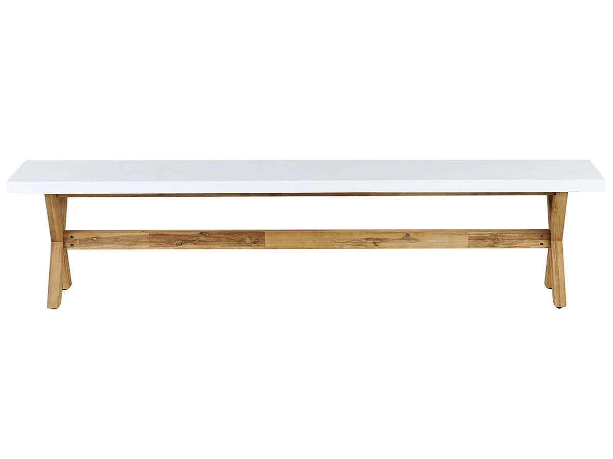 Conjunto de exteriores con base de madera de acacia . Si estás buscando la forma de convertir tu jardín en el mejor lugar para reunir a tu familia y amigos, este conjunto de jardín es justo lo que necesitas. La mesa ofrece espacio para hasta 6 personas. Todos los elementos están fabricados a partir de materiales resistentes al agua y a la intemperie: la mesa y los asientos, de cemento reforzado y, las bases, de madera de acacia, todo de fácil mantenimiento. Este juego de jardín destacará en espacios de diseño moderno o minimalista, pero combina bien con cualquier estilo. Detalles: Tipo de Producto: Conjunto de comedor Estilo: Moderno Color: Blanco Tipo de material: Cemento Material principal: Cemento reforzado con fibra Material adicional: Madera de acacia Material de la superficie: Cemento Acabado: Laminado Dimensiones: Dimensiones del banco: 200x40x45 Altura del asiento: 41 cm Dimensiones de la mesa: 200x100x75 cm Peso: 110 kg Capacidad de peso de la mesa: 125 kg La oferta incluye: 1 x Mesa, 2 x Banco Ventajas: Perfecto para cenar en grupos más grandes, Acabado de hormigón para aspecto industrial, Perfecto para todo tipo de exterior, Ideal para uso en interiores y exteriores, Materiales de la más alta calidad Información de montaje: Requiere montaje completo. Más de 60 min. Información adicional: Dependiendo de la humedad del aire, los muebles de concreto pueden tener grietas, agujeros o cambiar de color. Es una característica natural del material y no afecta su calidad. El producto viene con un libro de cuidados detallado para ayudarte a mantener tus muebles en las mejores condiciones durante muchos años. Consulta estos consejos para garantizar el mantenimiento adecuado de tus muebles nuevos – encontrarás las instrucciones de mantenimiento junto con el manual de montaje. Texto de resistencia: Gracias a su resistencia al agua, puedes utilizar el producto al aire libre y dejarlo a la intemperie durante lluvias ligeras. Si no es posible guardarlo en un lugar cerrado y protegido, recomendamos utilizar una funda protectora. La exposición prolongada a la humedad puede provocar daños en el mueble. Resistencia: Agua ligera / humedad Consejos de mantenimiento: Cemento reforzado con fibra: 1.Durante el invierno utilice una funda protectora o guarde los muebles en el interior 2.Para evitar manchas, no utilice detergentes cremosos o detergentes con ácidos o aceites. Madera de acacia: 1.Limpiar con un limpiador suave y un paño suave en la dirección de la veta. Secar con un paño inmediatamente después de limpiar 2.Durante el invierno o en condiciones climáticas adversas, utilice una funda protectora o guarde los muebles en el interior 3.Los muebles con acabado de aceite deben volverse a engrasar antes de ponerlos en uso y al menos una vez al año, especialmente en el clima húmedo.