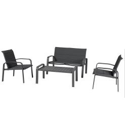 Convierta su espacio al aire libre en un lugar de relajación con el salón de jardín Elyn. Hecho de aluminio duradero, este juego de cuatro piezas incluye un cómodo sofá de dos plazas, dos sillas y una mesa para brindar la máxima comodidad y estilo. El tejido en un elegante color marrón, añade un toque extra de lujo a tu zona exterior. ¡Disfrute del aire libre en su propio santuario privado con el salón de jardín Elyn!