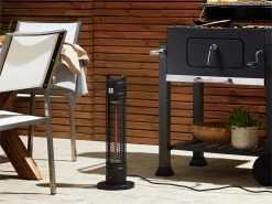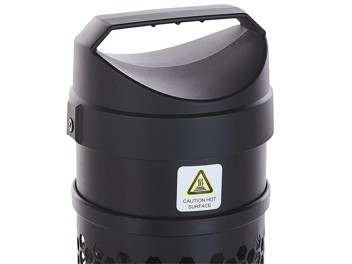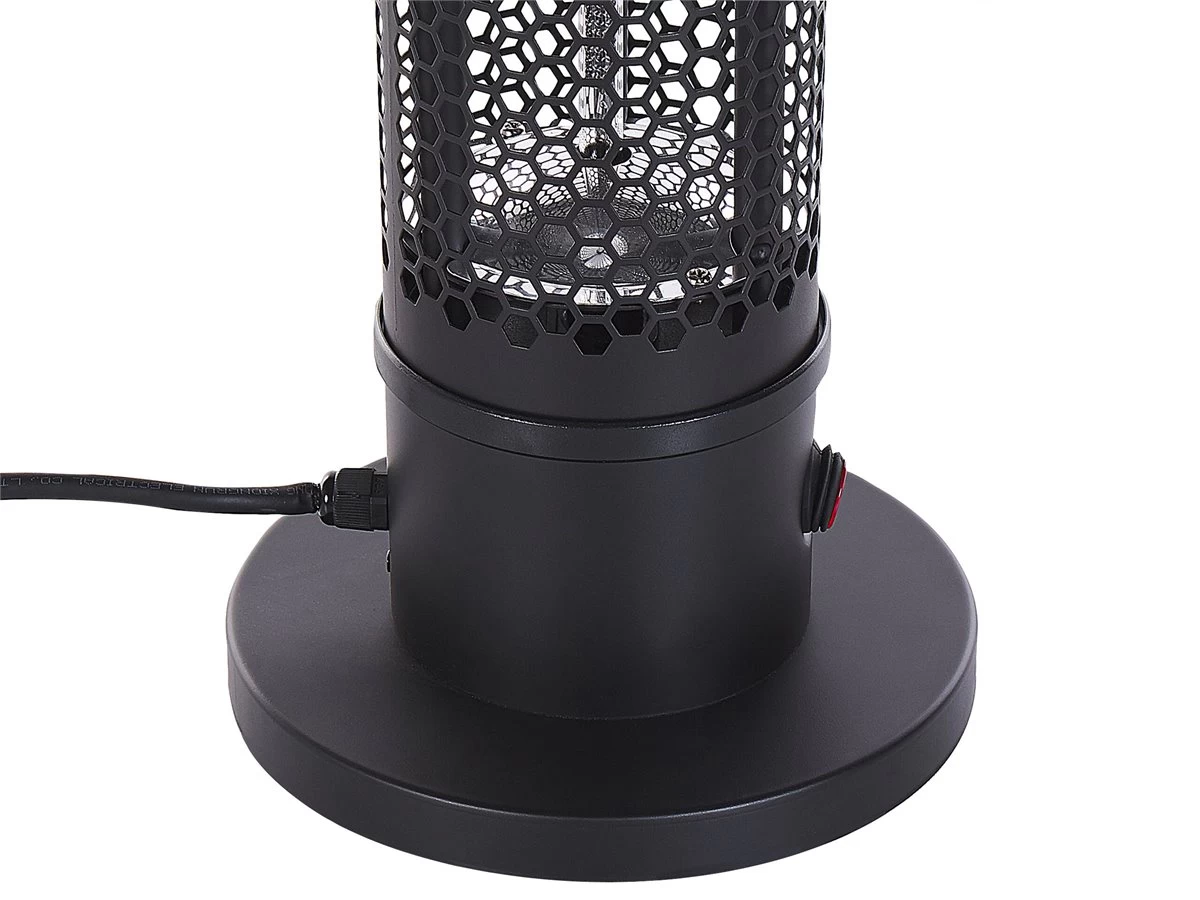 Calentador de exterior. Esta estufa eléctrica de exterior es ideal para las tardes frías de reunión en el patio. Al calentar mediante radiación infrarroja, no daña el medio ambiente. Este calefactor de torre no requiere montaje y se puede mover de un lugar a otro con facilidad. Detalles: Tipo de Producto: Estufa de patio Color: Negro Tipo de material: Metal Material principal: Aluminio Material adicional: Material sintético Código de protección IP: IP 44 (Impermeable Consumo de potencia: 1000 W Montaje: Independiente Dimensiones: Longitud del cable: 185 cm Profundidad: 20 cm Ancho: 20 cm Altura: 62 cm Peso: 4 kg La oferta incluye: 1 x Estufa de exterior Ventajas: Función antivuelco para mayor seguridad, Perfecto para todo tipo de exterior, Cumple con los estándares PAH, RoHS y SAA, Certificados GS, CE, CB, Ideal para uso en interiores y exteriores Información de montaje: Requiere montaje parcial. 20-40 min. Información adicional: La estufa requiere hasta 5 minutos para alcanzar su máxima potencia de calentamiento, Distancia mínima de la pared: 100 cm, La distancia óptima de calentamiento es de 2 metros. Aunque se puede sentir el calor a mayor distancia, se recomienda colocar el dispositivo lo más cerca posible y así aprovechar al máximo su potencial. Consejos de mantenimiento: Aluminio: 1.No meter en el agua 2.Antes de comenzar a limpiar, desconecta el enchufe. No toques la estufa cuando esté caliente o no se haya enfriado por completo 3.Limpiar con un paño húmedo