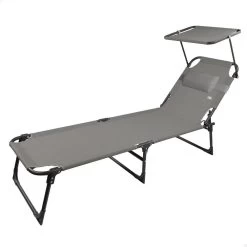 Tumbona Plegable Playa C/parasol Y Cojín Acolchado Gris Aktive