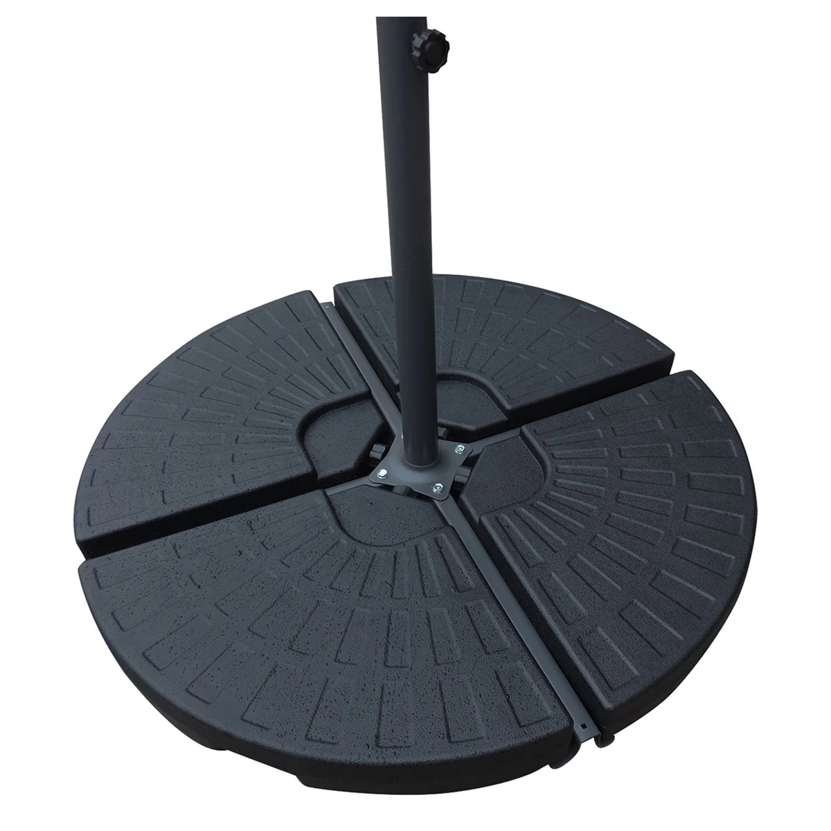¿Vientos huracanados? No te preocupes, con estas losas lastradas (que se rellenan con agua o arena, tu sombrilla se mantendrá en su sitio (recuerda cerrarla.