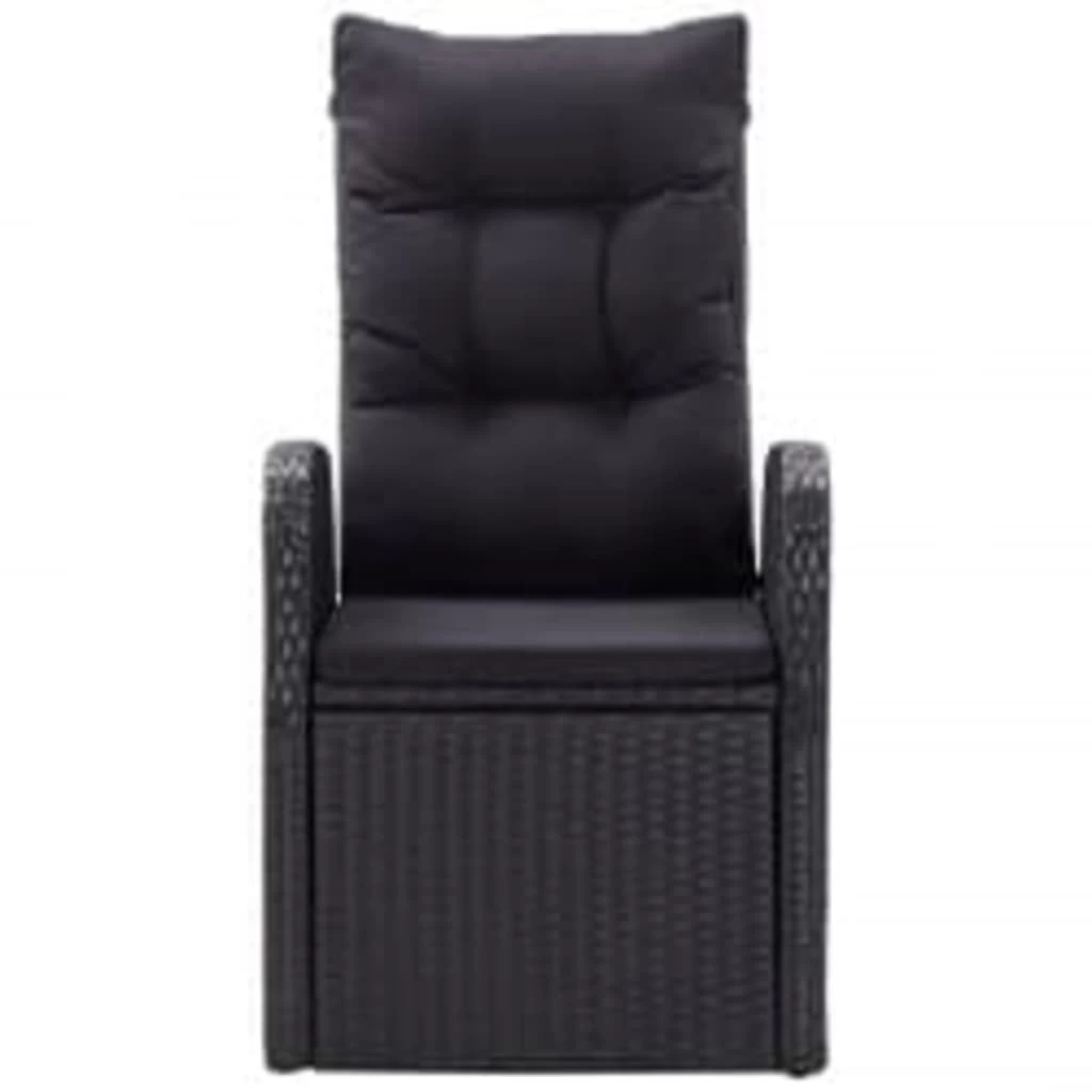 ¡Este elegante juego de comedor para jardín está destinado a ser el centro de atención del jardín o patio! ¡Es una opción genial para comer o relajarse al aire libre! Las estructuras de acero con recubrimiento en polvo hacen que la mesa y las sillas sean robustas y estables para usar a diario en exteriores. Gracias al ratán PE resistente al agua, las sillas son fáciles de limpiar y resistentes. El respaldo se reclina tirando del botón del lateral. Gracias a la construcción ligera, son fáciles de mover. Los cojines de asiento acolchados también dan un plus de comodidad. Las fundas de poliéster apernas necesitan cuidados y se pueden quitar para lavarlas. Asimismo, la lisa superficie de vidrio se limpia fácilmente con un paño húmedo y es perfecta para colocar comida, bebida y otros artículos decorativos. Nota: Para prolongar la vida de tus muebles de exterior, te recomendamos que los protejas con una funda impermeable. Color: NegroColor del cojín: NegroMaterial: Ratán PE, acero con recubrimiento en polvo, vidrioMaterial de la funda de cojín: 100% poliésterDimensiones de la mesa: 80 x 80 x 74 cm (largo x ancho x altoDimensiones de la silla (no reclinada: 57 x 73 x 105 cm (ancho x profundo x altoDimensiones de la silla (reclinada: 57 x 127 x 97 cm (ancho x profundo x altoAncho del asiento: 47 cmProfundidad del asiento: 53 cmAltura del asiento desde el suelo: 41 cmAltura del reposabrazos desde el suelo: 63 cmGrosor del cojín: 4 cmRequiere montaje: SíLa entrega contiene:1 x Mesa4 x Sillas4 x Cojines de asiento4 x Cojines trasero