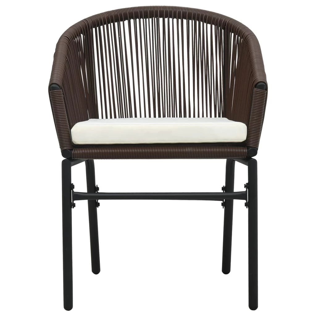 ¡Crea una estética atractiva y cohesionada en el espacio al aire libre de tu casa con este juego de comedor para jardín! Este juego de comedor de jardín está hecho de una estructura de acero con recubrimiento en polvo, lo que lo hace robusto y estable para el uso diario al aire libre. La superficie de vidrio liso es fácil de limpiar con un paño húmedo y es perfecto para colocar comida, bebidas y otros artículos decorativos. Las sillas de jardín están hechas de ratán de PVC, lo que las hace duraderas y resistentes a las inclemencias del tiempo y a los rayos UV. Además, cada asiento viene con un cojín grueso acolchado extraíble para mayor comodidad en tu tiempo de descanso. Nota: Para prolongar la vida de tus muebles de exterior, te recomendamos que los protejas con una funda impermeable. Mesa:Color: NegroMaterial: Acero con recubrimiento en polvo, vidrioDimensiones: 80 x 80 x 74 cm (largo x ancho x altoSilla:Color: MarrónColor de cojines: Blanco cremaMaterial del cojín: Tela (100% poliésterMaterial: Ratán PVC, acero con recubrimiento en polvoDimensiones: 58 x 58 x 78 cm (ancho x profundo x altoAltura del asiento desde el suelo: 46 cmRequiere montaje: SíLa entrega contiene:1 x Mesa4 x Sillas4 x Cojines de asiento