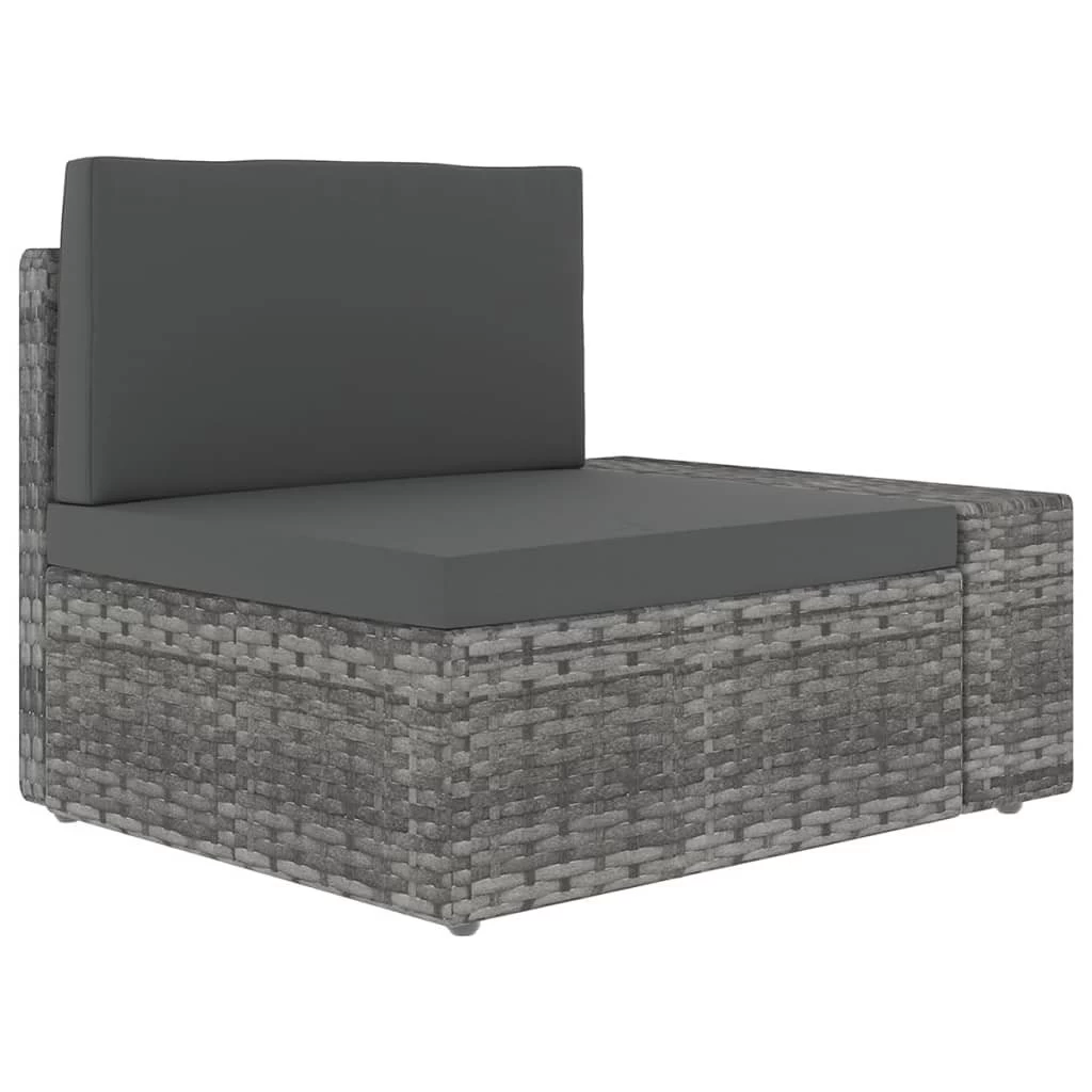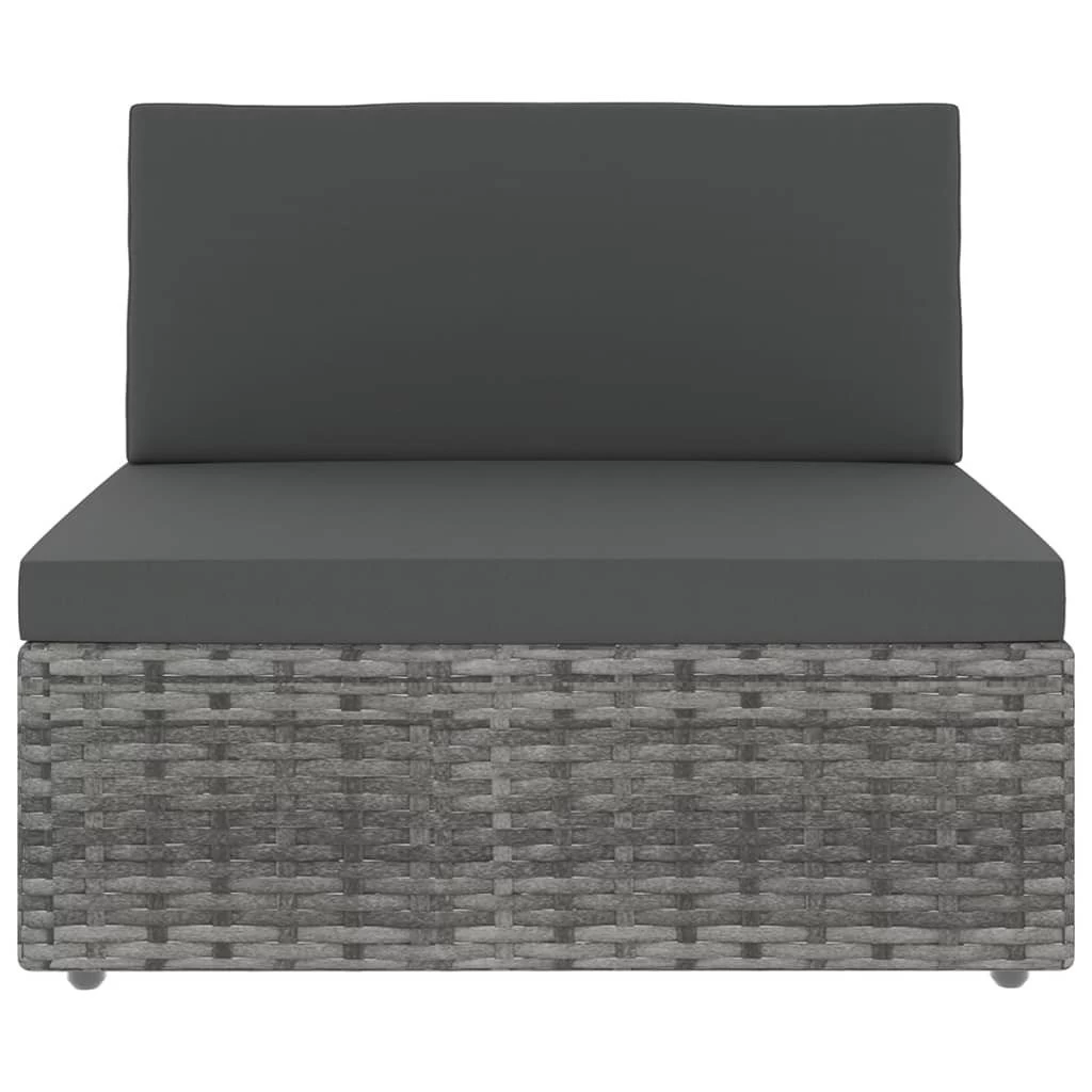 Este juego de salón de jardín combina estilo y funcionalidad y es una opción ideal para relajarte y disfrutar del buen tiempo, echar una siesta o charlar con tu familia o amigos. Gracias al ratán PE resistente a la intemperie, el asiento es fácil de limpiar, duradero y adecuado para el uso diario. El sofá posee una robusta estructura de acero con recubrimiento en polvo, que es muy duradero. También es ligero y modular, lo que lo hace completamente flexible y fácil de mover para adaptarse a cualquier entorno. Los cojines gruesos y extraíbles son muy cómodos. Puedes combinarlo con otros asientos modulares disponibles en nuestra tienda y ¡crear tus configuraciones personales de sofás de jardín! Nota: Para prolongar la vida útil de los muebles de exterior, te recomendamos que los limpies con regularidad y no los dejes al aire libre sin protección innecesariamente.Limpieza: Usa una solución de jabón suave.Almacenamiento: Si es posible, guarda el producto en un lugar fresco y seco en el interior. Si el producto se almacena al aire libre, protégelo con una funda impermeable. Limpia y seca el exceso de agua o nieve de las superficies planas después de una lluvia o nevada. Permite la ventilación para evitar daños relacionados con la humedad. Color: GrisColor de cojín: Gris antracitaMaterial: Ratán PE, tela (100% poliéster, acero con recubrimiento en polvoDimensiones del sofá del medio: 58,5 x 65,5 x 52 cm (ancho x fondo x altoDimensiones del sofá de la esquina: 65,5 x 65,5 x 52 cm (ancho x fondo x altoDimensiones del sofá de esquina (con reposabrazos izquierdo/derecho: 78,5 x 65,5 x 52 cm (ancho x profundo x altoGrosor del cojín: 8 cmRequiere montaje: SíLa entrega incluye:3 x Sofás centrales1 x Sofá de esquina1 x Sofá esquinero con reposabrazos izquierdo1 x Sofá esquinero con reposabrazos derecho6 x Cojines de asiento7 x Cojines de respaldo