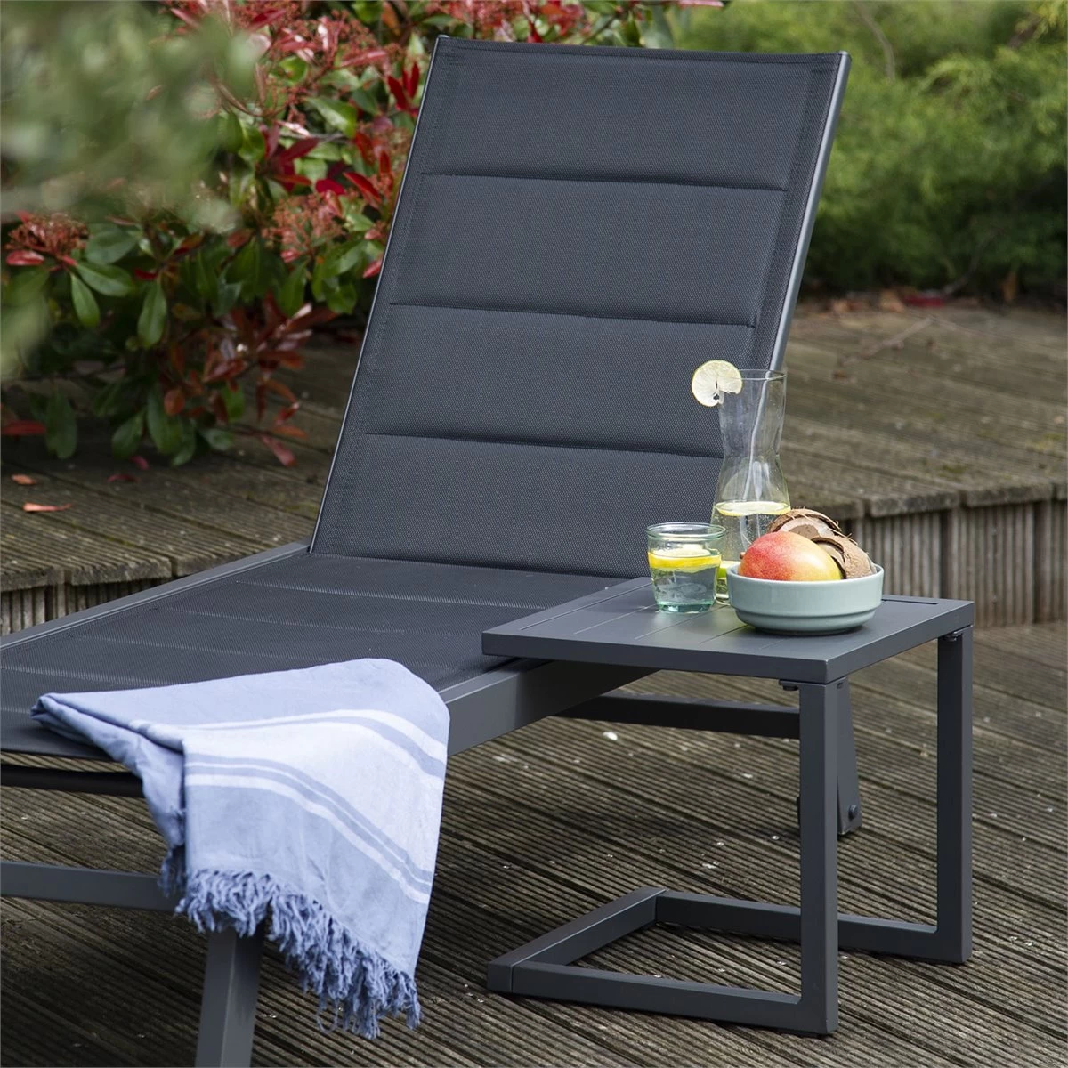 Esta mesa de centro de jardín es una idea brillante para completar su salón de jardín o combinarla con su tumbona de la misma colección. Ofrece un lado práctico a su área de relajación al aire libre, ya sea que decida organizar su terraza, su jardín o el borde de su piscina para sus momentos de convivencia en el verano con la familia o los amigos. Con esta mesa auxiliar para exterior, puede tener a mano todo lo que desea para relajarse. Fue diseñado en aluminio, un material ligero y resistente que le permite hacer frente a los rayos U.V. del sol así como a la humedad. ¡Esta mesa auxiliar de diseño se adapta a todos los estilos de jardín!