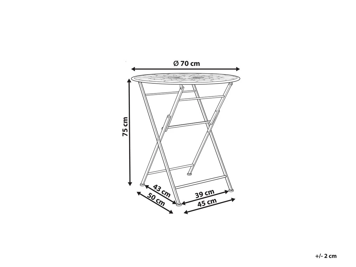 Mesa de exterior. Añade un toque romántico a tu zona exterior con esta mesa de balcón. Está fabricada a partir de metal de alta calidad. El diseño inspirado en el estilo provenzal combina bien con su funcionalidad. Es plegable, lo que permite ahorrar espacio y facilita el transporte de una habitación a otra. Detalles: Tipo de Producto: Mesa de jardín Estilo: Retro Color: Rojo Tipo de material: Metal Material principal: Hierro Material de las patas: Metal Material de la superficie: Metal Forma: Redonda Acabado: Revestimiento en polvo Dimensiones: Ancho: 70 cm Longitud: 70 cm Altura: 75 cm Peso: 4 kg Capacidad de peso: 40 kg La oferta incluye: 1 x Mesa Ventajas: Estilo retro, Resistencia UV, Fabricación sólida y precisa, Plegable para un fácil almacenamiento, Compacto y perfecto para espacios limitados Información de montaje: No requiere montaje Texto de resistencia: Gracias al acabado especial, la superficie del producto es resistente a la oxidación. Esto significa que se puede utilizar en exteriores. Cuando el producto no esté en uso, se recomienda cubrirlo con una cubierta o colocarlo en un lugar seco. Resistencia: Intemperie Consejos de mantenimiento: Metal: 1.Limpiar con detergentes suaves 2.Los muebles de acero y sus elementos no deben exponerse al agua. De lo contrario, existe la posibilidad de que el agua oxidada salga de las tuberías del marco 3.Cuando no estén en uso, los muebles deben guardarse en el interior o bajo una cubierta protectora 4.Para aumentar la durabilidad del artículo, manténgalo seco y recuerde la limpieza regular 5.Cualquier daño a la capa de pintura exterior debe protegerse de la humedad 6.Para garantizar la protección contra la corrosión, evite los limpiadores alcalinos o ácidos. Después de limpiar, secar bien 7.Quite las tapas protectoras con regularidad para que salga todo el líquido, déjelas secar y utilice un spray anticorrosión si es necesario.