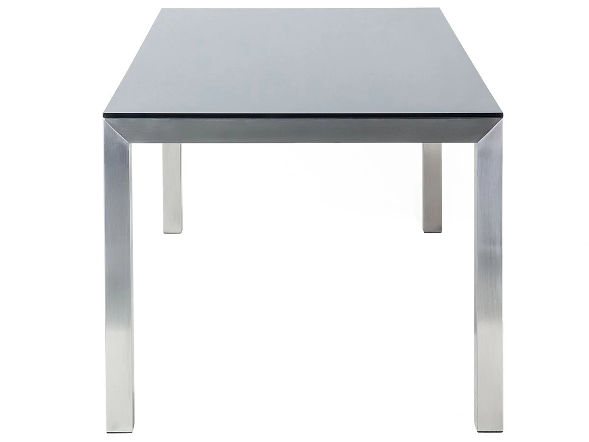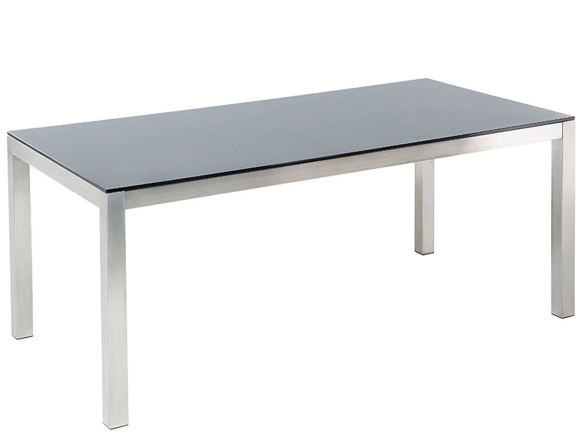 Mesa de exterior. Añade elegancia a tu zona exterior con esta mesa de comedor. Está fabricada a partir de acero inoxidable duradero y vidrio templado. Tiene una capacidad para 6 personas. La combinación de materiales de alta calidad y el diseño elegante aportan un estilo definido. Detalles: Tipo de Producto: Mesa de comedor Estilo: Moderno Color: Negro Tipo de material: Vidrio Material principal: Vidrio templado Material de la superficie: Vidrio Forma: Rectangular Acabado: Brillante Dimensiones: Ancho: 90 cm Longitud: 180 cm Altura: 76 cm Peso: 66 kg Capacidad de peso: 70 kg La oferta incluye: 1 x Mesa Ventajas: Tablero grueso de vidrio templado resistente, Perfecto para todo tipo de exterior, Diseño atemporal, Materiales reciclables y ecológicos, Montaje muy sencillo Información de montaje: Requiere montaje completo. 20-40 min. Información adicional: El producto viene con un libro de cuidados detallado para ayudarte a mantener tus muebles en las mejores condiciones durante muchos años. Consulta estos consejos para garantizar el mantenimiento adecuado de tus muebles nuevos – encontrarás las instrucciones de mantenimiento junto con el manual de montaje. Texto de resistencia: El producto es resistente al agua, lo que significa que no se dañará expuesto a la lluvia o en contacto con otros líquidos. Puede dejarlo al aire libre incluso durante fuertes lluvias o humedad. Durante la temporada de invierno es recomendable almacenar el producto en el interior o bajo una cubierta impermeable. Resistencia: Agua Consejos de mantenimiento: Acero inoxidable: 1.Limpiar solo con agentes de limpieza suaves. No utilice limpiadores alcalinos o ácidos 2.Las lluvias ácidas, el agua salada y las tormentas de arena pueden dañar la capa protectora 3.Durante el invierno, utilice una funda protectora o guarde los muebles en el interior 4.Durante la lluvia, se recomienda utilizar una funda protectora. Vidrio templado: 1.Secar después de la lluvia o la nieve. Durante el invierno, utilice una funda protectora o guarde los muebles en el interior 2.Para evitar rayones, no use un limpiador cremoso 3.Limpiar con un detergente suave o acondicionador de vidrio con un paño suave. Secar después de limpiar.