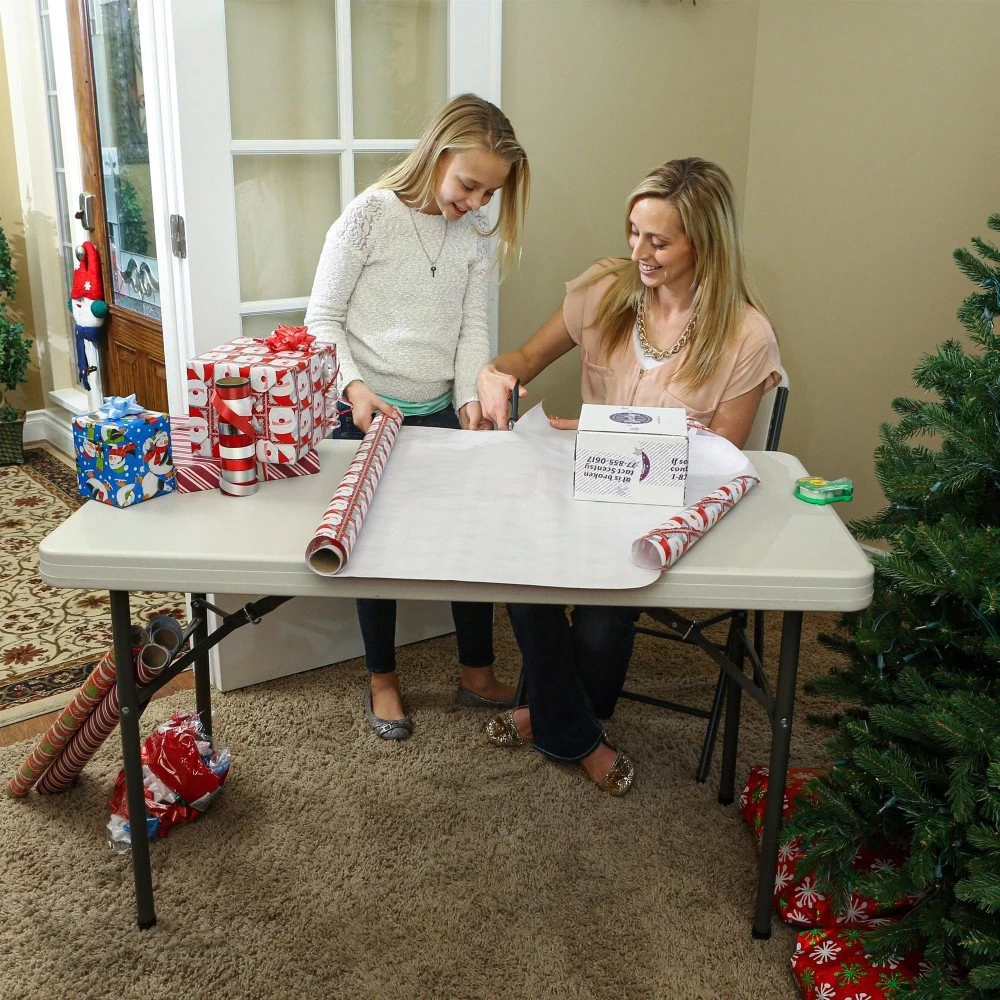 - Mesa plegable auxiliar rectangular con patas de pliegue compacto, medidas cerrada: 122 x 61 x 5 cm, medidas abierta: 122 x 61 x 74 cm, peso soportado (distribución uniforme: 680 kg