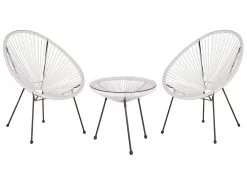 Conjunto De Balcón 2 Plazas De Ratán Blanco/negro ACAPULCO II