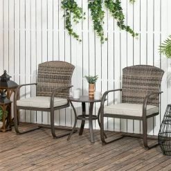 Set Comedor Jardín 3 Pzas Y Cojines Ratán Sintético Negro Gris VidaXL