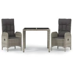 Set Comedor De Jardín 3 Piezas Con Cojines Ratán Sintético Gris VidaXL