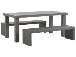 Conjunto De Jardín De Cemento Reforzado Mesa Y 2 Bancos En Forma De U Gris TARANTO