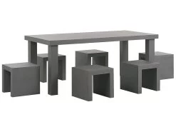 Conjunto De Jardín De Cemento Reforzado Mesa Y 6 Taburetes Gris TARANTO