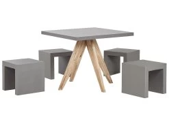 Conjunto De Jardín De Cemento Reforzado Mesa 90 X 90 Cm 4 Taburetes Gris/madera Clara OLBIA/TARANTO