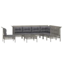 Set De Muebles De Jardín 9 Pzas Y Cojines Ratán Sintético Gris VidaXL