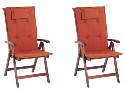 Conjunto De 2 Sillas De Jardín De Madera De Acacia Con Cojines Terracota TOSCANA