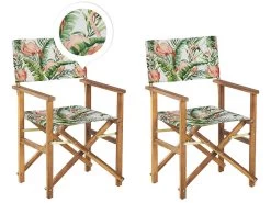 Conjunto De 2 Sillas De Jardín Madera Clara/blanco Crema Con Tela Verde/blanco/rosa CINE
