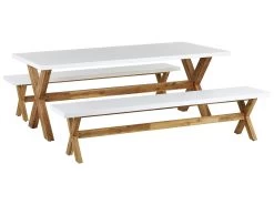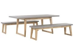 Conjunto De Jardín Mesa Y 2 Bancos De Cemento Reforzado Gris/madera Clara ORIA