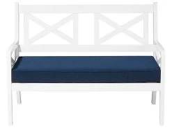Banco De Jardín En Madera Blanca 120 Cm Con Cojín Azul Oscuro BALTIC