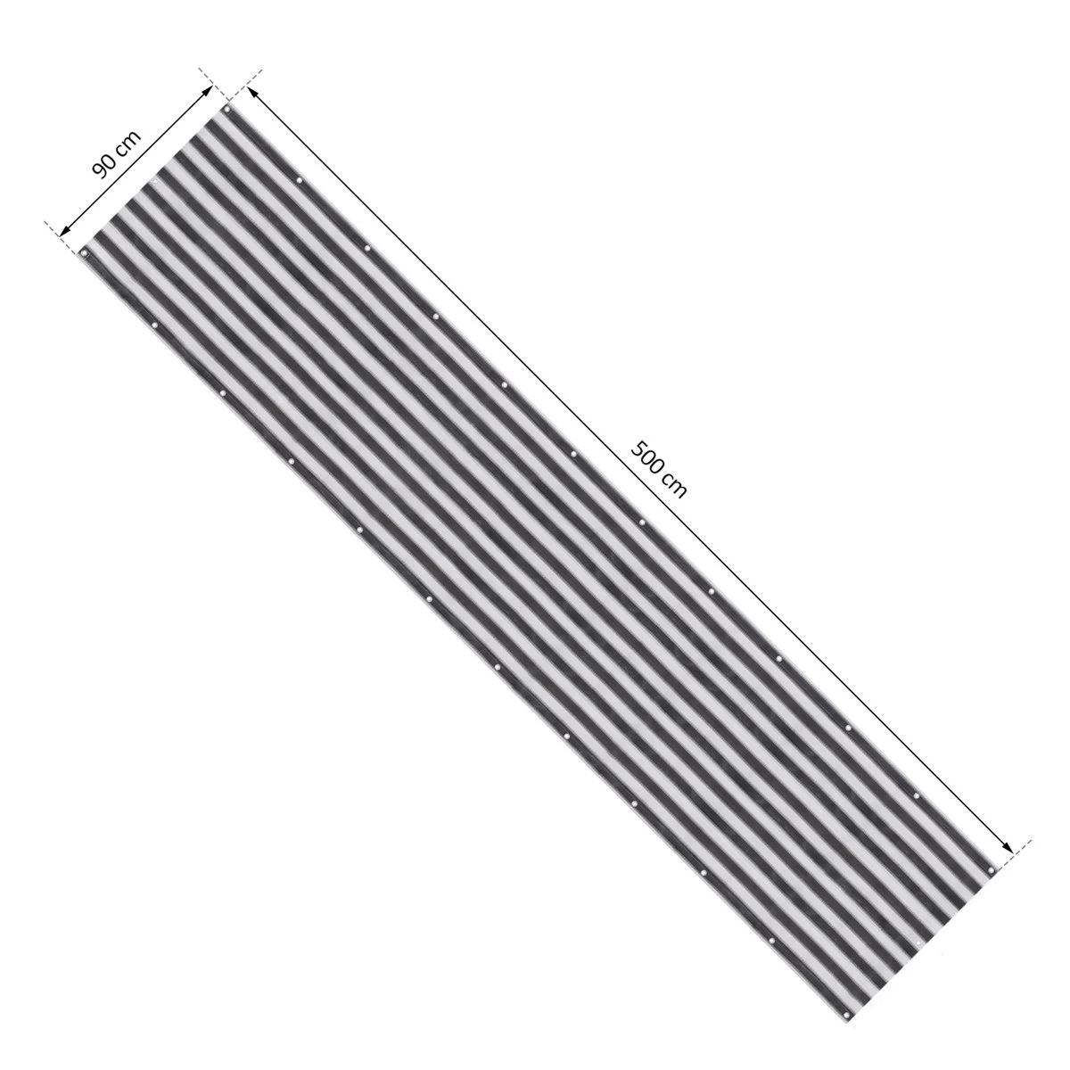 Si no te gusta estar a la vista de todos, pero te gusta disfrutar de tu balcón ¿has pensado en poner una pantalla de privacidad para balcón? Seguirás disfrutando del espacio al aire libre que te ofrece tu casa, pero estarás a salvo de las miradas de los curiosos. Aprovecha tu balcón para realizar tus actividades favoritas o como salón de exterior. Siéntate cómodamente a leer o hablar con amigos al aire libre, pero sin sentirte expuesto a las miradas de los desconocidos que pasean por la calle. Podrás hacerlo de forma muy rápida y sencilla gracias a esta pantalla de privacidad para balcón. Características – Pantalla protectora para balcón, patio, piscina y jardín – Proporciona intimidad – Fabricado con HDPE (polietileno para utilizarse en exteriores – Incluye todo el material necesario para instalarlo rápidamente (cuerdas de 12m de largo y ojales de metal inoxidable – Apto para permanecer a la intemperie Especificaciones – Color: gris y blanco – Material: HDPE – Medidas: 500×90 cm (LxAn – Longitud de la cuerda: 12 m – Peso neto: 1.7 kg – Referencia: 844-277GY