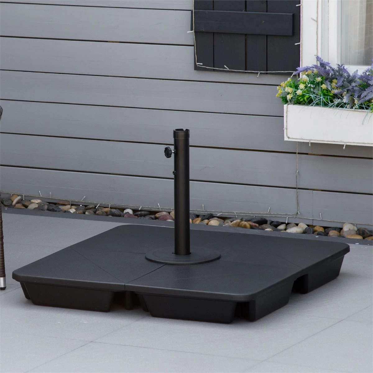 Si quiere que tu sombrilla excéntrica de base cruzada esté siempre firme, estable y segura, esta base de Outsunny es perfecta para ti. Fabricada en plástico PP, es resistente e ideal para un uso prolongado. La base se compone de 4 piezas que se encajan fácilmente y cada una puede contener hasta 20 kg de arena, aportando un peso de 80 kg en total. ¡Simplemente combina esta base con tu sombrilla y crea un espacio sombreado perfecto en tu jardín!