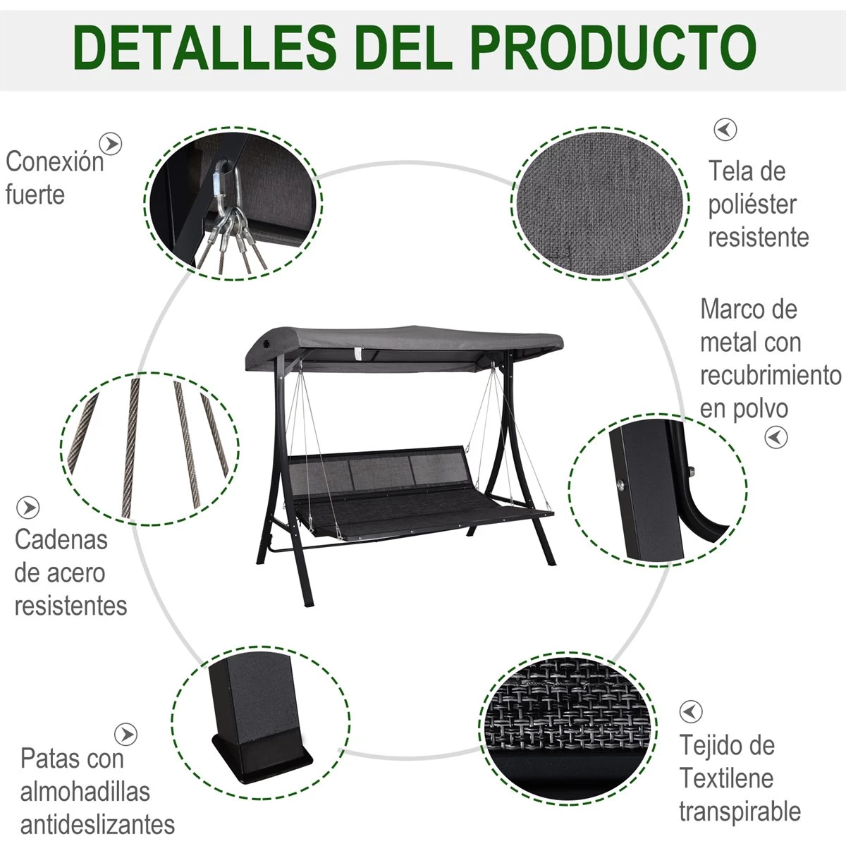 - – Balancín de 3 plazas con los asientos ligeramente curvados, perfecto para relajarte solo o con tus amigos