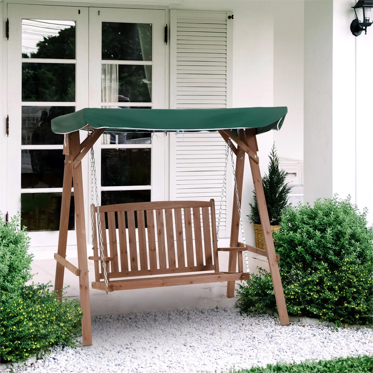 Disfruta del aire libre como nunca antes con este balancín de jardín de Outsunny. Hecho de madera de abeto, cuenta con espacio suficiente para que puedan sentarse cómodamente 2 personas. El asiento, con respaldo de listones de madera, está fijado de forma segura al marco principal mediante cadenas de metal galvanizadas. La estructura con laterales en forma de A para mayor estabilidad también tiene un toldo superior para garantizar la protección solar, a los rayos UV y en caso de que llueva suave.