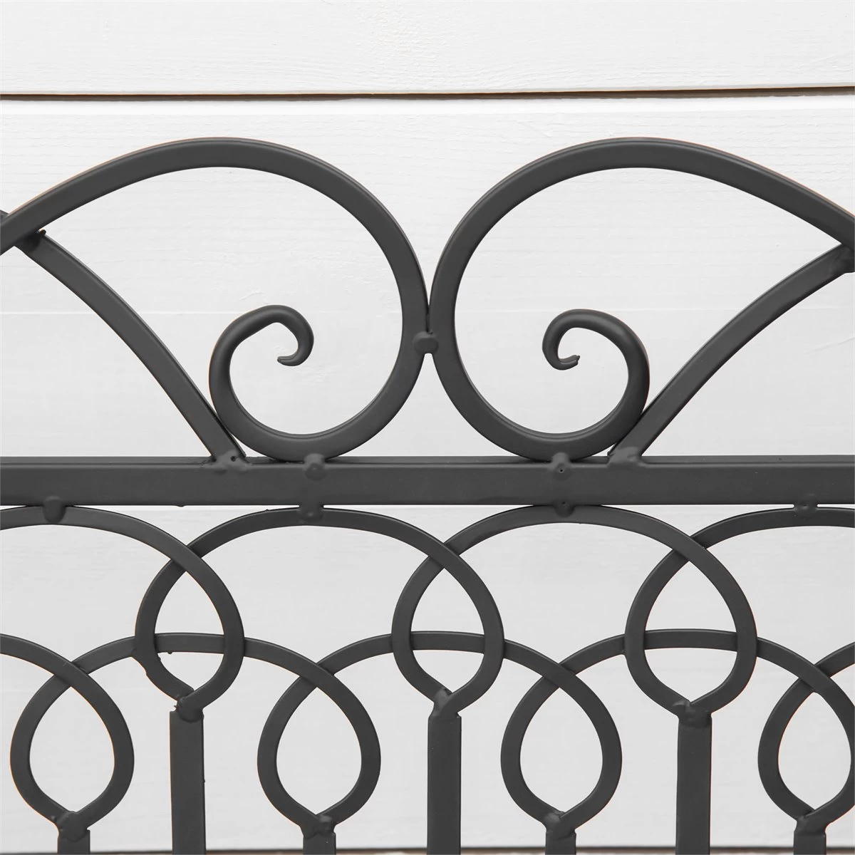 - – BANCO DE JARDÍN DE FORJA: Este banco de terraza de estilo antiguo y vintage es muy fácil de combinar en cualquier espacio exterior. Ideal para colocar en patios, terrazas, jardín, junto a la piscina o en cualquier espacio aire libre – CÓMODO Y DECORATIVO: Ofrece un asiento cómodo y elegante gracias a su respaldo alto con detalles forjados y un asiento amplio con apoyabrazos ligeramente curvos. Para que puedas sentarte a leer un libro cómodamente o tomar el café con tu amigo en este banco de 2 plazas – ESTRUCTURA DE METAL: Banco fabricado en tubos de metal fundido (electroforético con recubrimiento en polvo, para una mayor protección contra la oxidación y resistencia a la intemperie – ASIENTO PARA 2: Este banco de jardín con un ancho útil de 103 cm, ofrece un cómodo asiento para que puedan sentarse dos personas a la vez. Genial para relajarse en compañía o solo – MEDIDAS TOTALES: 110x60x97 cm (LxANxAL. Peso máximo soportado: 200 kg. Requiere montaje