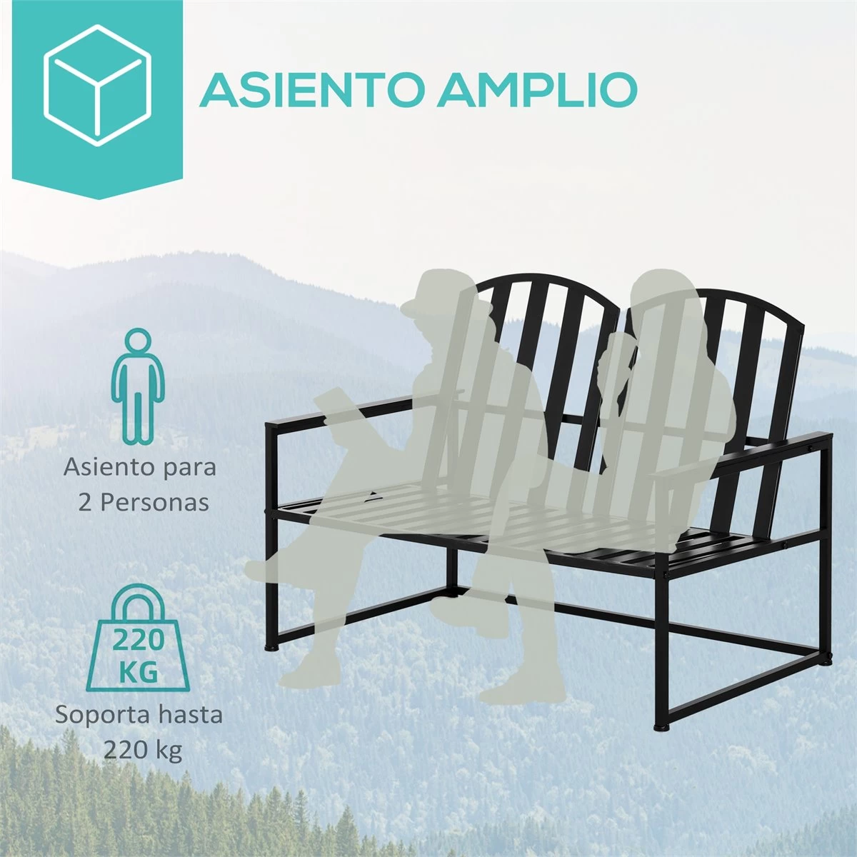 - – BANCO METÁLICO PARA EXTERIORES: Banco elegante de metal con asiento y respaldo con diseño de listones y apoyabrazos en ambos lados. Combinará fácilmente en cualquier espacio al aire libre como jardín, patio o terraza – APTO PARA 2 PERSONAS: Banco con asiento lo suficientemente amplio para que puedan sentarse cómodamente 2 personas – ESTABLE Y DURADERO: Banco con estructura resistente de metal, con diseño con barras inferiores de refuerzo, muy estable y capaz de soportar hasta 220 kg – FÁCIL MANTENIMIENTO: Este banco no requiere apenas de mantenimiento y es fácil de limpiar con un paño húmedo. Su diseño de listones con lamas de metal es realmente útil para evitar la acumulación de agua en los días de lluvia – MEDIDAS TOTALES: 108x63x80,5 cm (LxANxAL; Medidas del asiento: 100x45x32 cm (LxANxAL; Peso máximo soportado: 220 kg
