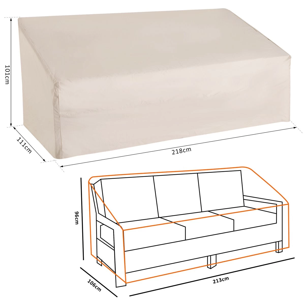 ¿Quieres alargar la vida de tu mobiliario exterior? Protégelo de las inclemencias del tiempo con esta funda para muebles. Fabricada con tela Oxford de alta calidad, esta cubierta es resistente a la decoloración, desgarros y al moho. El tejido está recubierto con PVC de modo que ofrece mayor resistencia al agua, la nieve y el polvo y por tanto, una mayor protección de tus objetos. Su diseño en color beige es muy elegante y combinará perfectamente con el resto de mobiliario. Es fácil de limpiar con un paño húmedo. ¡Es la solución ideal para cubrir los muebles de terraza!