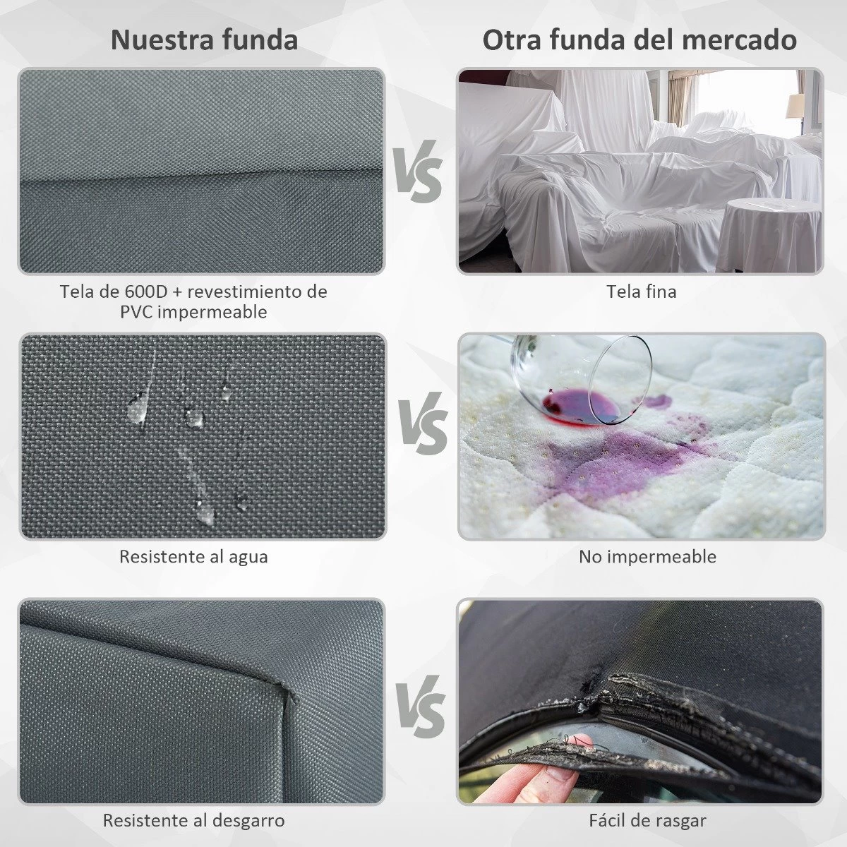¿Quieres proteger tu mobiliario de exterior contra el mal tiempo? Entonces te interesará esta fantástica funda protectora de la marca Outsunny. Podrás cubrir cualquier tipo de mueble, especialmente sillas, bancos o sofás. Perfecta para proteger de la lluvia, la nieve, el polvo, los excrementos de pájaros o cualquier tipo de factor meteorológico que pudiera deteriorar tus muebles. Tiene un cordón en la parte inferior para tensar la funda sobre todo en los días de viento.