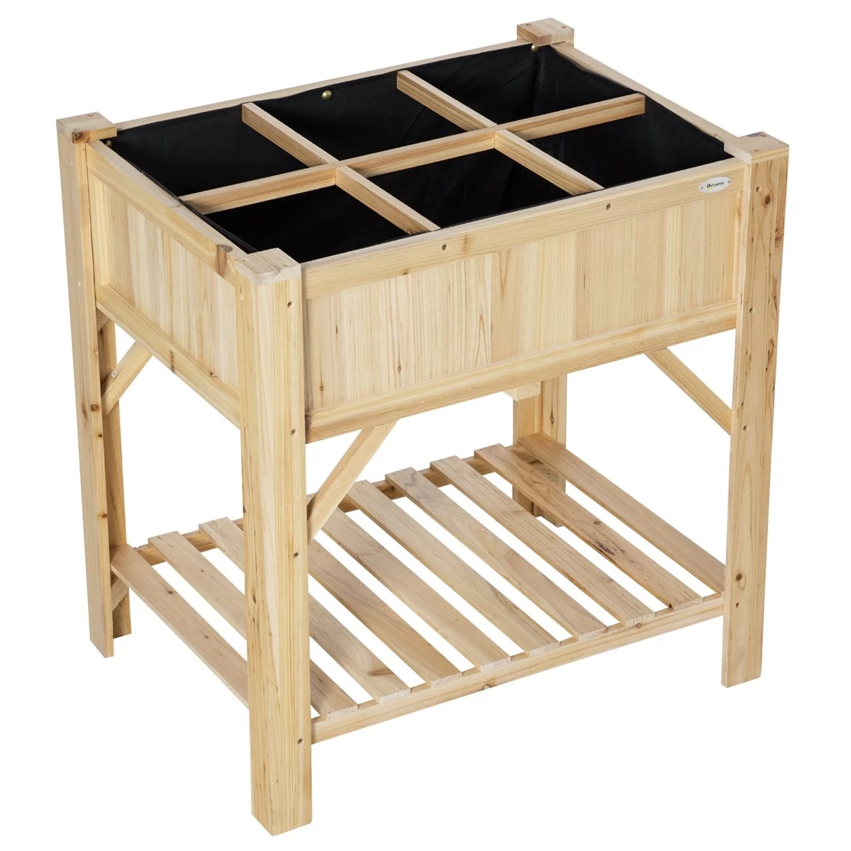 ¿Siempre has querido tener un huerto y cultivar tus propias plantas y hortalizas, pero no dispones de jardín ni espacio? Entonces este huerto urbano de Outsunny puede que te sea muy útil. Esta jardinera elevada con 8 compartimentos permite el cultivo y cuidado de tus plantas de forma cómoda evitando malas posturas. También tiene un estante inferior de listones, para evitar la acumulación de agua si llueve, para que tengas a mano tus herramientas y artículos de jardinería. Características – Huerto urbano elevado para cultivar tus plantas de forma cómoda en el jardín, terraza, patio, etc. – Mesa de cultivo dividida en 6 compartimentos diferenciados – Fabricada en madera de abeto maciza, robusta y resistente – Diseño elevado con patas, para evitar malas posturas y evitar la afectación por plagas de insectos – Balda inferior para guardar herramientas y otros utensilios de jardinería – Tela interior de malla geotextil transpirable y permeable para facilitar la limpieza, y evitar que las raíces o alguna piedrecita tapone los agujeros de drenaje – Diseño compacto, ideal para espacios reducidos – Ligero y fácil de transportar y montar – Requiere montaje rápido y fácil Especificaciones – Color: madera natural – Material: madera de abeto y malla geotextil – Medidas totales: 78,5x58x81 cm (LxANxAL – Medidas de la zona de plantación: 71,5x51x22 cm (LxANxAL – Medidas de cada compartimento: 25×23 cm (LxAN – Carga máxima: 80 kg (área de plantación y 15 kg (estante – Referencia: 845-656