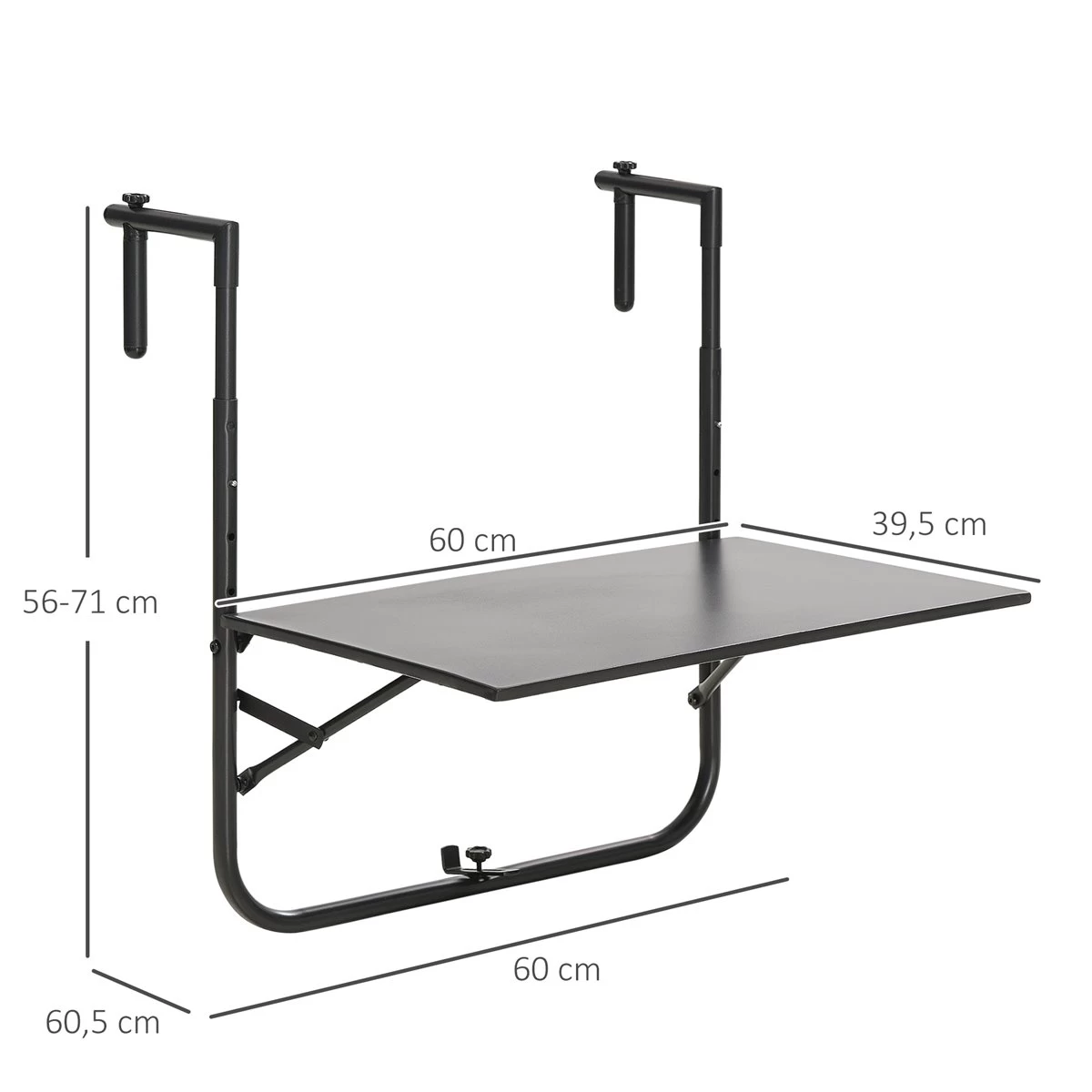 Si tienes un balcón pequeño donde no te cabe una mesa convencional o buscas una solución que no ocupe espacio, estás de suerte. Esta mesa colgante de Outsunny es ideal para estas situaciones. Hecha de acero resistente a la intemperie y a la corrosión, cuenta con un brazo para colgar regulable y la altura de la encimera se puede ajustar en diferentes posiciones. Ya verás que su instalación es fácil y rapidísima, tan solo fíjala a la barandilla de tu balcón y tendrás una mesa al instante. Características – Ideal para tener una mesa o soporte adicional en balcones pequeños o espacios estrechos – Diseño inteligente y simple para instalar y regular en prácticamente cualquier barandilla – Mesa colgante con estructura de acero resistente a la intemperie y a la oxidación – Brazo colgante ajustable entre 4 y 12 cm para acoplarla fácilmente a la barandilla de la terraza o del balcón – Soporte con altura regulable entre 56 y 71 cm para satisfacer diferentes necesidades de uso – Fácil de montar Especificaciones – Color: negro – Material: acero – Medidas totales: 60×60,5×56-71 cm (LxANxAL – Grosor de barandilla adaptable: 4-12 cm – Rango de altura ajustable: 56/61/66/71 cm – Carga máxima: 15 kg – Referencia: 84G-032V00BK