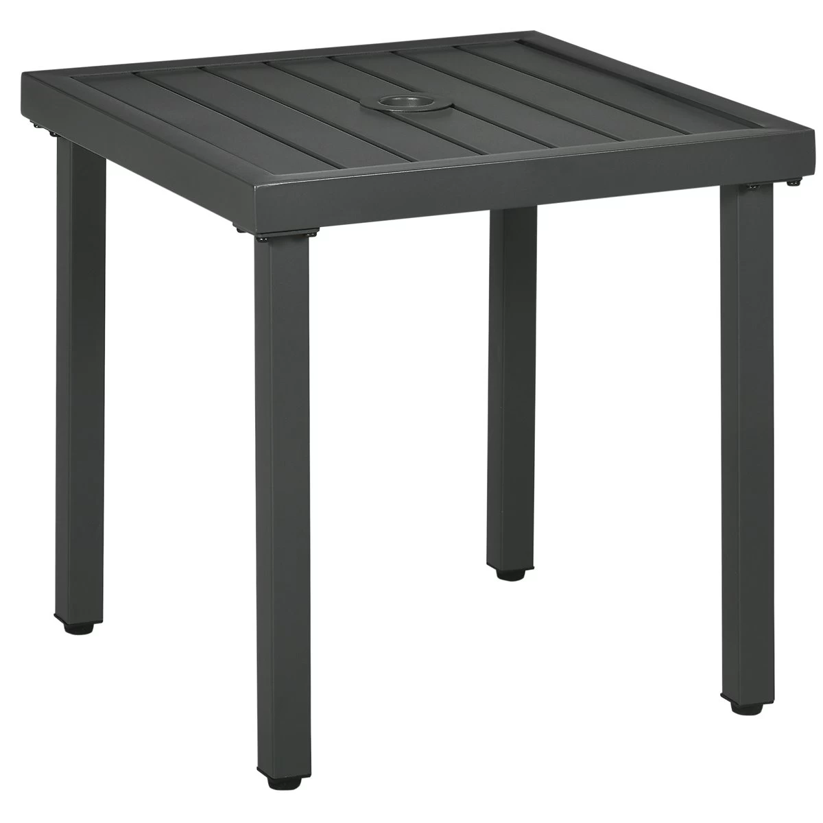 Hablar de una mesa pequeña no significa hablar de una mesa insignificante, ya que realmente son muebles fundamentales y muy prácticos tanto para nuestros espacios interiores como exteriores. Esta mesa auxiliar de Outsunny para jardín, además, tiene un orificio central para que puedas colocar tu sombrilla, ofreciendo un soporte para tus bebidas, libros y demás en medio de 2 tumbonas al lado de la piscina o junto a dos sillas o sillones en la terraza de tu casa. Características: Mesita auxiliar adecuada para cualquier espacio al aire libre como el jardín, patio o terraza Mesa pequeña adecuada para tener junto a las tumbonas, sillas y más La estructura de acero ofrece una gran resistencia y capacidad de carga Tratado con electroforesis antes del recubrimiento en polvo para proteger la mesa de la lluvia o la oxidación Mesa con orificio central para poder colocar una sombrilla y protegerte de los rayos del sol Pies con almohadillas ajustables para mantener el equilibrio de la mesa en suelos irregulares y no rayarlo Se requiere montaje Especificaciones: Color: gris Material: acero Medidas totales: 51x51x51 cm (LxANxAL Diámetro del orificio para sombrilla: Ø45 mm Carga máxima: 30 kg Referencia: 84G-034V00GY