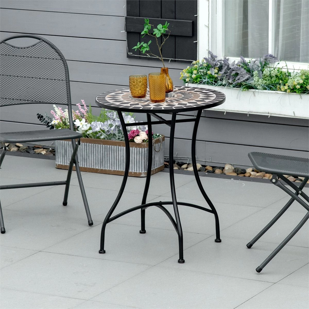 ¿Estás preparando tu terraza o jardín para la llegada del buen tiempo? Entonces esta mesita de exterior de Outsunny seguro que te encantará. La mesa cuenta con una bonita estructura metálica con patas curvas y una encimera con un grabado tipo mosaico. Es tan bonita que, aunque esté diseñada para estar a la intemperie, podrás usarla también en diferentes espacios interiores de tu casa. Incluso usarla como soporte para tus plantas.