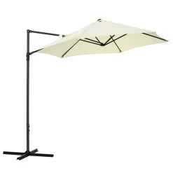 - – PARASOL EXCÉNTRICO VERSÁTIL: Esta elegante sombrilla de jardín lateral proporcionará una gran área de sombra en cualquier espacio. Ideal para tener en el jardín, en la piscina, en la terraza o en cualquier otro espacio al aire libre – GIRATORIO Y FÁCIL DE USAR: Gracias a su mástil giratorio, podrás orientar el parasol según las circunstancias sin tener que mover su base pesada. Con el mango de empuje la sombrilla se abre y cierra fácil y con la correa de tela puedes mantenerlo cerrado cuando no esté en uso – ESTRUCTURA RESISTENTE: Sombrilla excéntrica con estructura de acero resistente, ideal para un uso prolongado. Dispone de 6 varillas para sujetar la tela del toldo. Este parasol de jardín cuenta con un dosel ventilado que lo ayuda a mantenerse estable contra el viento. Está hecho de tela de poliéster de 180 g/m². El soporte cuenta con dos tornillos de fijación para mantener estable el poste – SOMBRA EN VERANO: Para tener en la terraza, jardín, patio… en cualquier espacio que quieras sombra la podrás colocar. Viene con una base incluida, aunque se le deben de poner pesos adicionales (no incluidos – MEDIDAS TOTALES: Ø256×245 cm (DxAL. NOTA: Incluye base cruzada, pero requiere pesos adicionales (no incluidos. SKU de contrapeso Outsunny utilizables: 01-0221, 84D-061. No uses este producto en condiciones climáticas extremas (viento fuerte, lluvia intensa, nieve