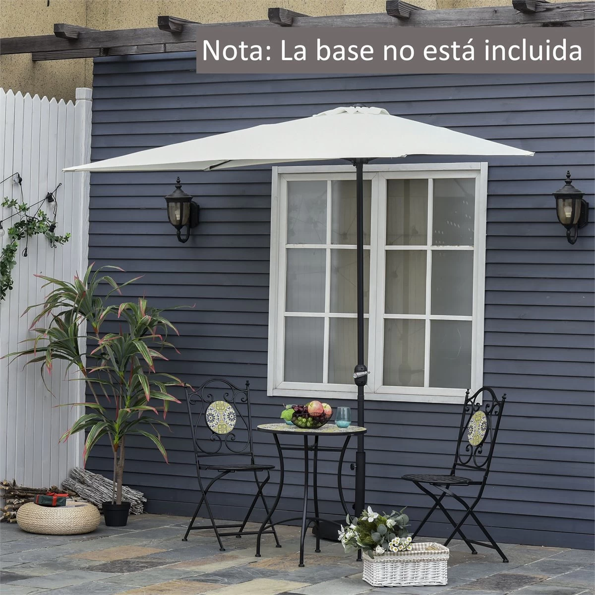 ¿Dispones de un espacio pequeño o quieres una sombrilla a ras de pared y no encuentras ninguna que te encaje? Estás de suerte, Outsunny te presenta esta sombrilla semicircular ideal para estas ocasiones. Con estructura resistente de metal con recubrimiento en polvo y cubierta de poliéster resistente a la intemperie y rayos UV, se abre y cierra fácilmente mediante una manivela y la podrás colocar en cualquier espacio.