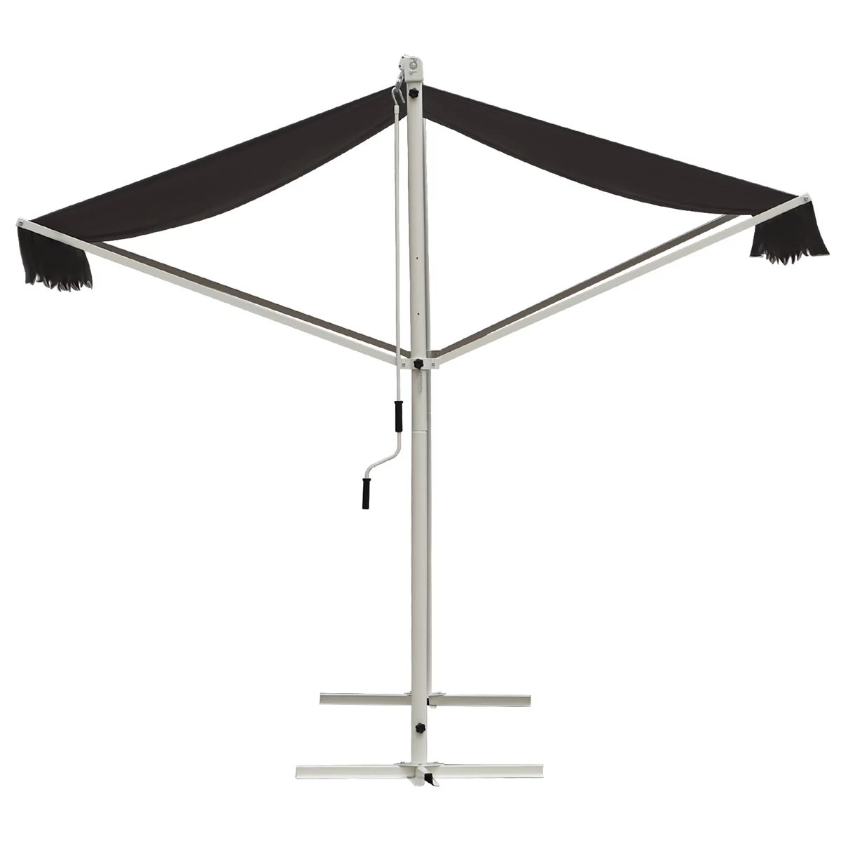 - – TOLDO DE PIE: Toldo de pie que por su diseño y color combinará perfectamente en tu terraza, patio o jardín. Una opción flexible para proporcionar un espacio de sombra sin necesidad de instalaciones fijas en la pared – ESTRUCTURA RESISTENTE: Marco de metal con recubrimiento en polvo para mayor resistencia a la intemperie y a la corrosión. Toldo con tejido grueso de poliéster anti-UV e impermeable – CON ÁNGULO AJUSTABLE: Cuenta con brazos articulados que permiten ajustar el ángulo del toldo en 3 posiciones diferentes dando mayor cobertura de sombreado al poderlo regular según la incidencia de los rayos solares – TOLDO CON MANIVELA: Cubierta de poliéster con recubrimiento de PU impermeable y con gran resistencia a los rayos UV. Se abre y cierra fácilmente de forma manual con una manivela extraíble con gancho – MEDIDAS TOTALES: 300x295x260 cm (LxANxAL; Longitud de la manivela: 150 cm; Medidas de la base: 88x60x4 cm(LxALxAN; Diámetro de la barra de soporte: Ø50 mm