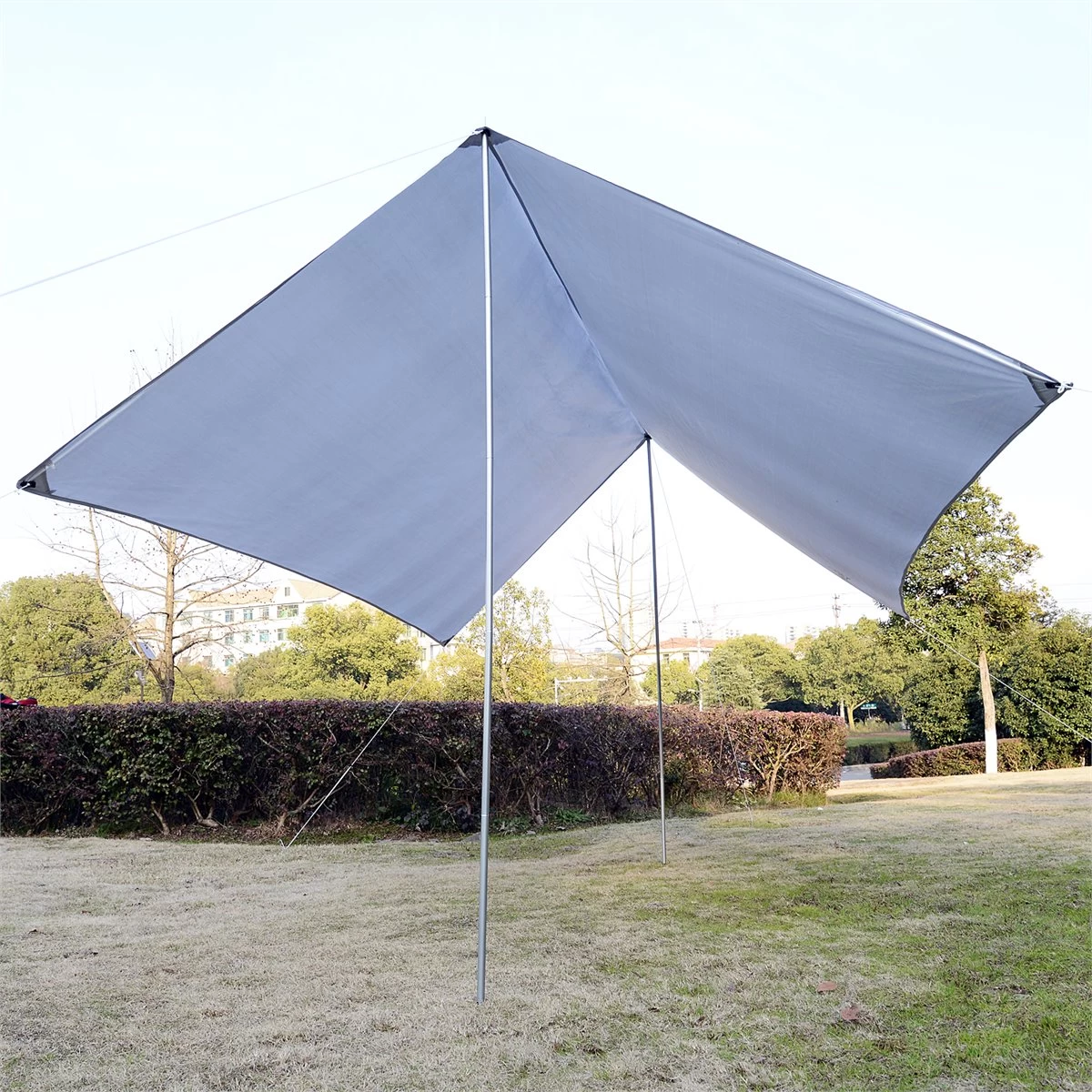 - – MULTIFUNCIONAL: Este toldo de tamaño grande sirve como carpa o tienda de campaña. Es ideal para camping, playa o cualquier espacio exterior. – MATERIAL IMPERMEABLE: Hecho de tela de poliéster impermeable con recubrimiento de PU, que le proporciona una óptima resistencia y protege de la lluvia y los rayos UV. – LIGERO Y PRÁCTICO: Peso ligero, fácil de transportar y de plegar para que ocupe poco espacio al guardarlo. Gracias a sus materiales de alta calidad es una opción perfecta para usar al aire libre. – INSTALACIÓN SENCILLA: Fácil de montar, viene equipado con 2 barras de acero, 8 clavijas de tierra y 8 cuerdas de sujeción. Es resistente al viento y todo tipo de clima. – Las costuras disponen de unos perfectos acabados, los ángulos están cubiertos con un refuerzo y disponen de agujeros de drenaje. Dimensiones totales: 3×3 m (LxAN, altura de barras: 2 m, longitud de cuerdas de sujeción: 2.5m.
