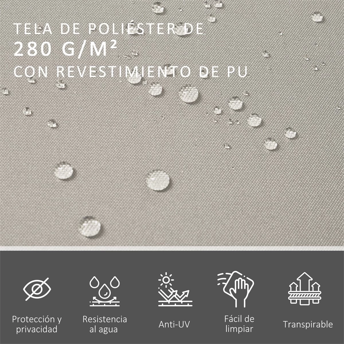 Si tienes un espacio al aire libre, pero a veces te sientes muy expuesto a las miradas de los curiosos, este toldo lateral de doble cara de Outsunny te va a encantar. Por un lado, te protegerá del sol, y por otro te proporcionará una zona con mayor privacidad. Además, su funcionamiento es muy sencillo, simplemente debes de tirar del asa para colocarlo en la posición deseada. Al ser retráctil, no ocupa apenas espacio cuando no está en uso.