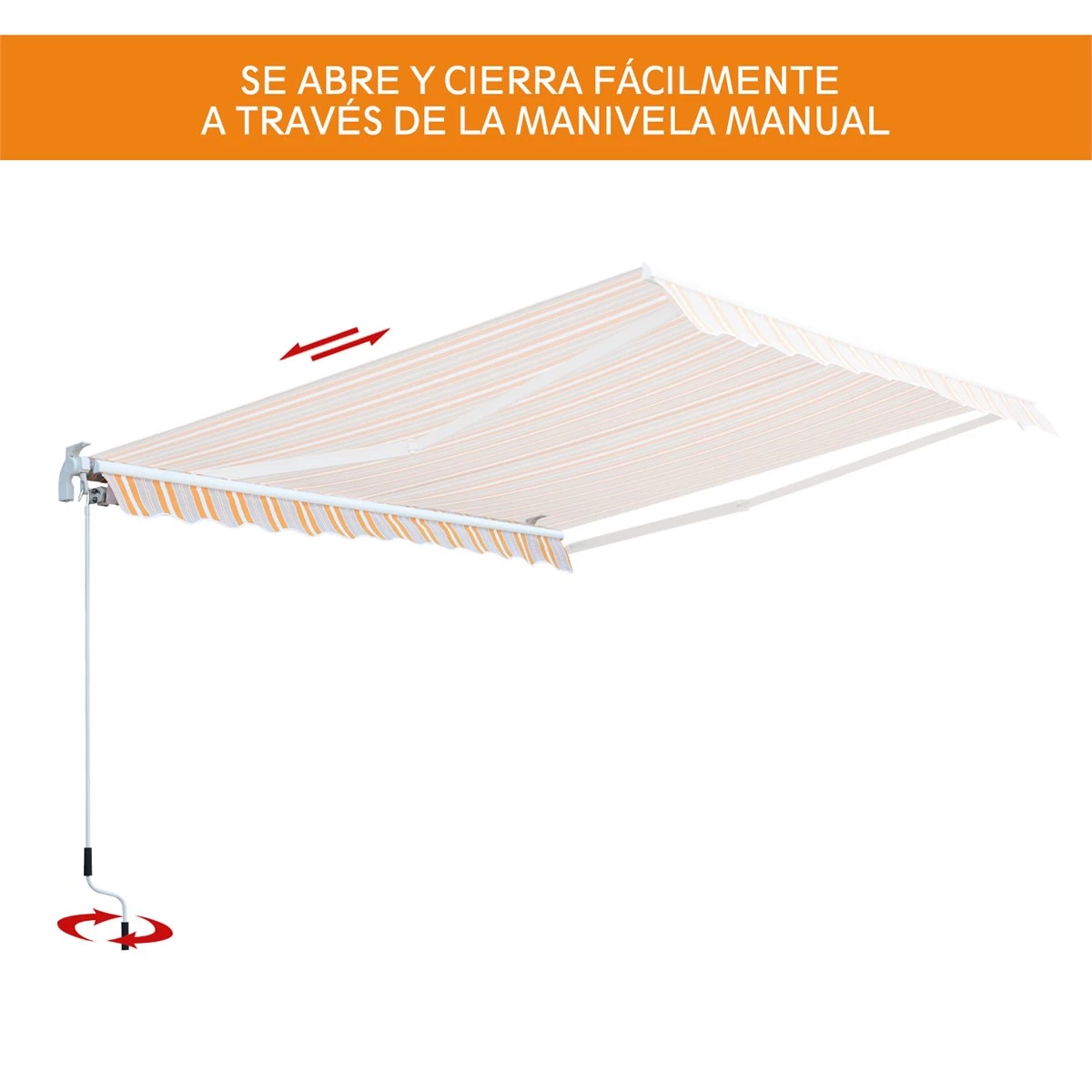 - – TOLDO DE EXTERIOR: Este toldo para exterior tiene una excelente relación calidad-precio. Ideal para protegerte del sol y los rayos UV en días de calor y darte refugio cuando llueve – ÁNGULO AJUSTABLE: El ángulo del toldo se puede ajustar entre 5 y 45º para que puedas adaptar según tus necesidades de uso e incidencia de los rayos solares – RESISTENTE: Está hecho 100% de poliéster impermeable con recubrimiento de PU, resistente al agua. Es fácil de limpiar. Viene con un soporte de aluminio con nivel de resistencia al viento: clase 1 – CON MANIVELA Y ACCESORIOS: Se abre y cierra fácilmente a través de la manivela manual incluida. Fácil de montar y desmontar para guardarlo en invierno si lo deseas. Incluye soportes y tornillos para su fijación – MEDIDAS TOTALES: 3×2,5 m (LxAN; Medidas de la manivela: Ø1,4×160 cm (DIAMxL; Longitud del faldón: 18 cm