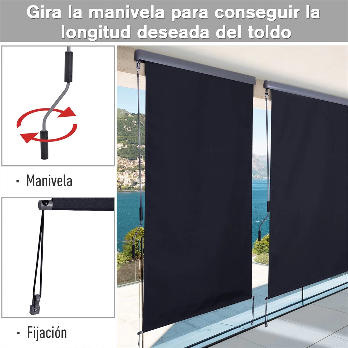 ¿Conoces el toldo más versátil de Outsunny? Este toldo vertical con manivela es apto para interiores y exteriores. Resistente a la intemperie ofrece privacidad y protección para ti, los tuyos y tu mobiliario de Jardín, protegiéndolos de los rayos del sol. También para zonas de casa dónde incide directamente el sol, como en los ventanales del comedor o del dormitorio, por ejemplo. Se instala muy fácilmente gracias a sus herrajes que permiten su colocación tanto en techo o pared. Para que disfrutes de la sombra en tu porche, patio, terraza, balcón o dentro de casa.