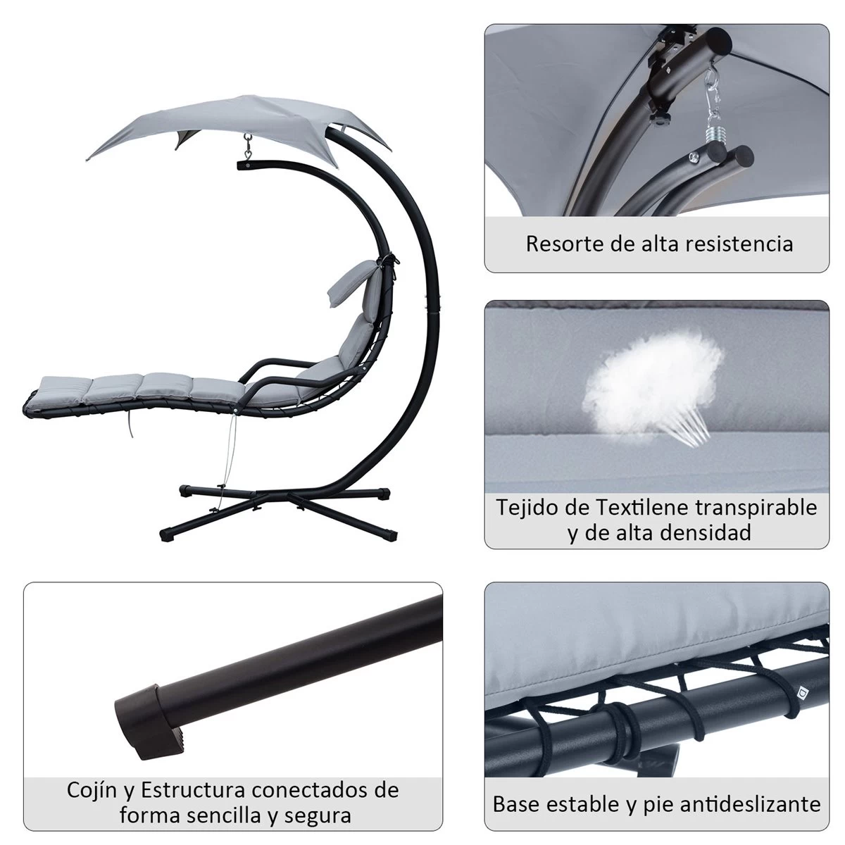 - – Tumbona suspendida con parasol ideal para tu jardín, patio o cualquier otro espacio al aire libre