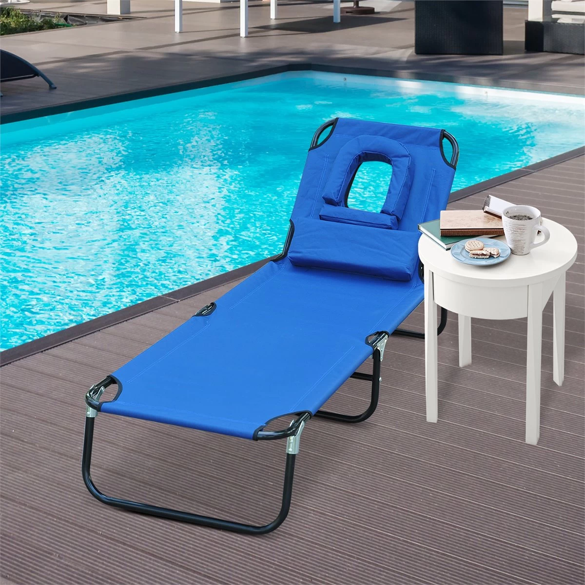 ¿Esperando el buen tiempo para salir al aire libre a leer o tomar un poco el sol? Entonces esta tumbona de Outsunny plegable te encantará. Y no solo porque podrás llevártela a todas partes, sino porque cuenta con un orificio a la altura de la cabeza y cojines alrededor para que puedas apoyar la cabeza y espalda si estás boca arriba o leer mientras está tumbado boca abajo. Además, el respaldo es regulable en altura. La querrás en el jardín de casa, en la playa, en el camping…
